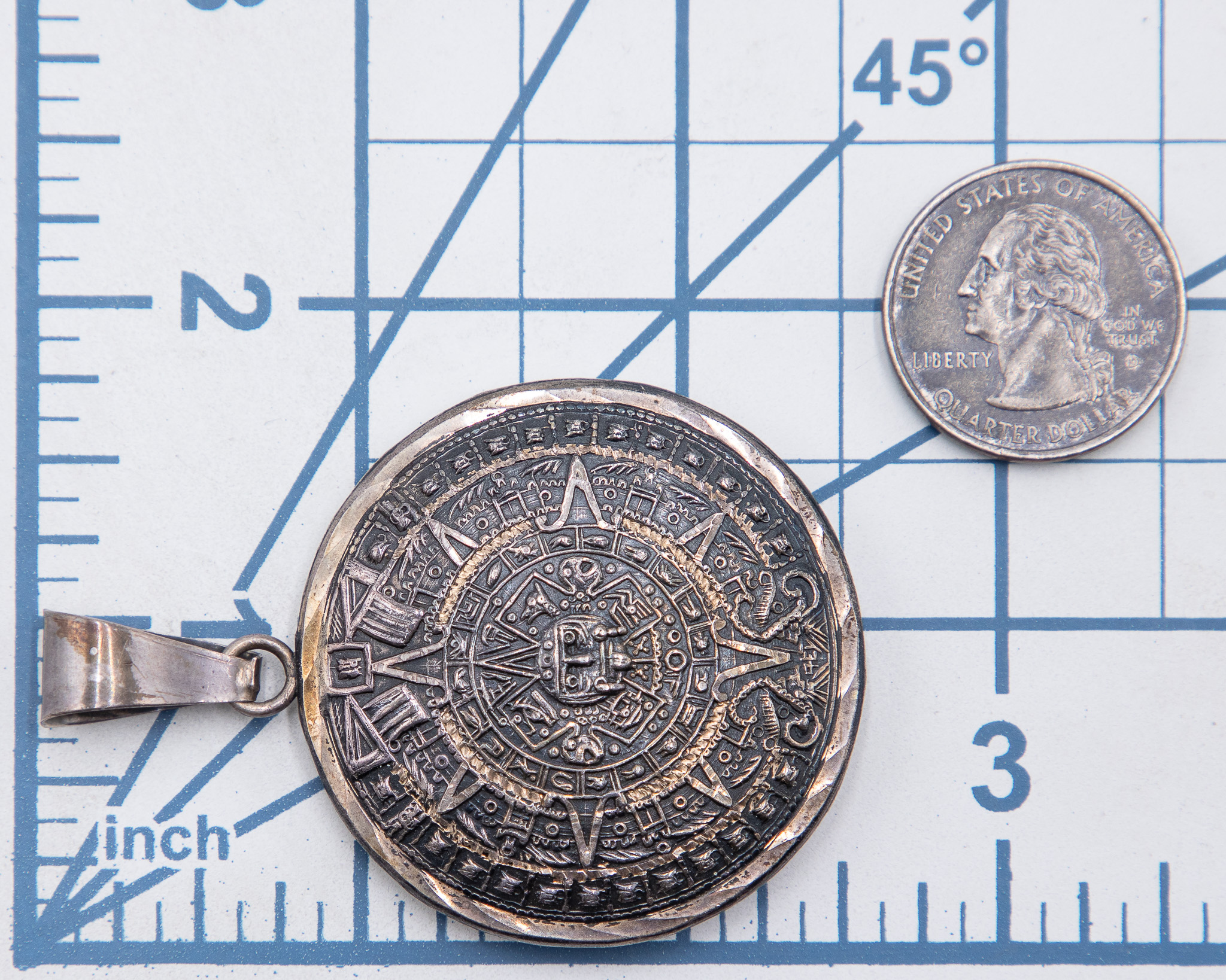 Signed Taxco Mexico Aztec/Mayan Reversible Pendant 15g