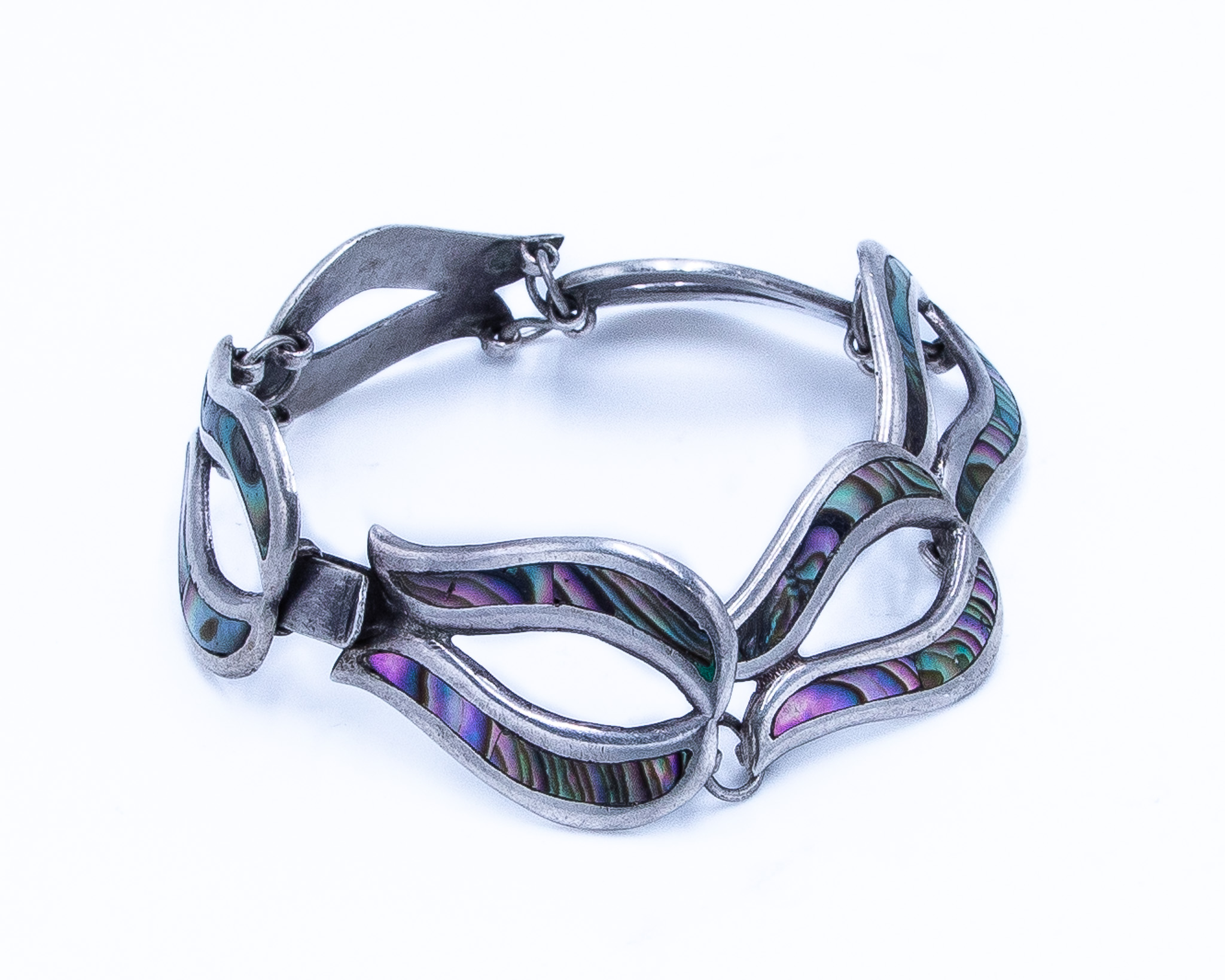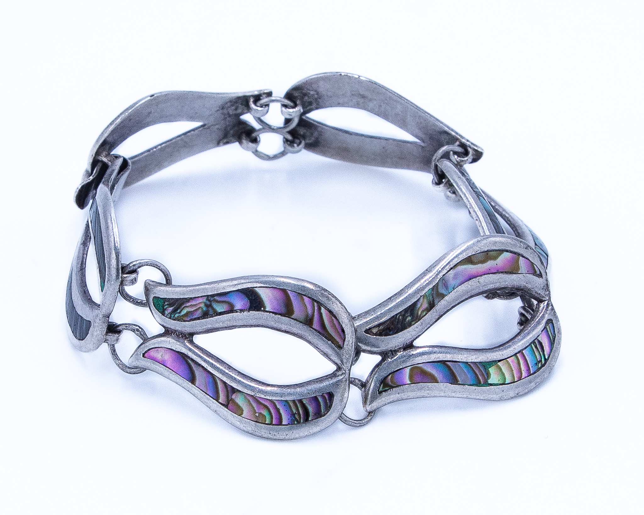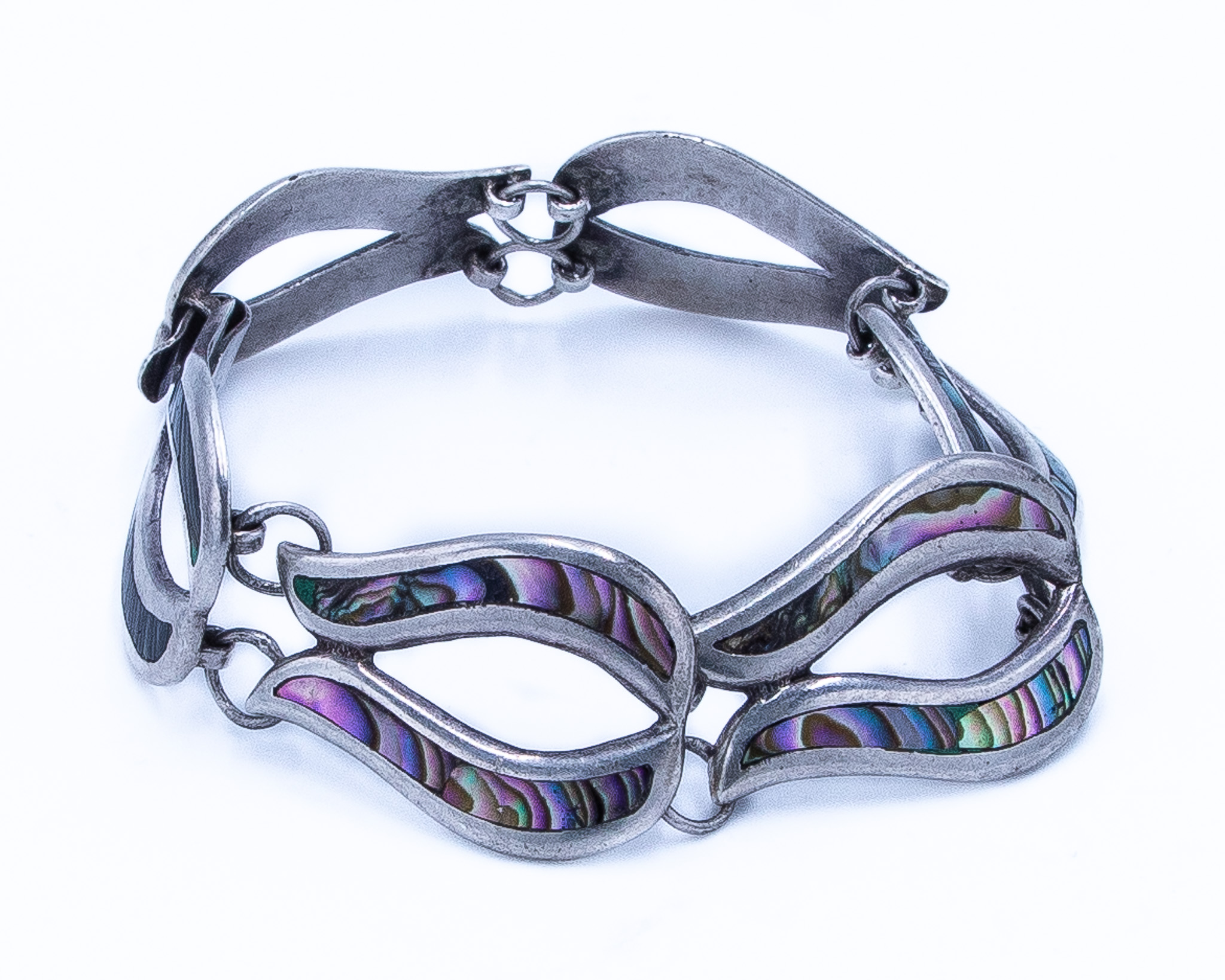 Vintage Mexico Abalone Sterling Bracelet 28g