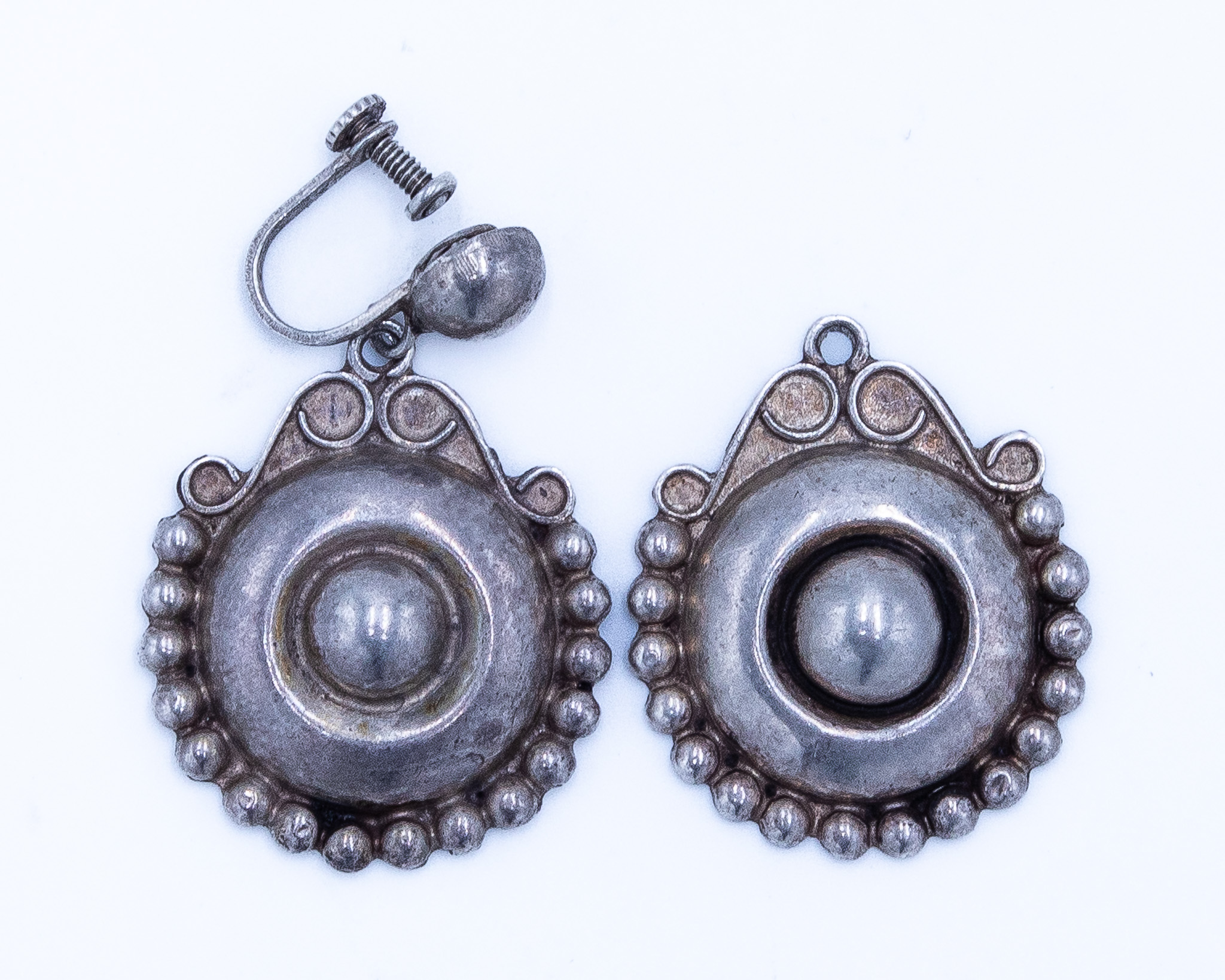 Vintage Mexico Sterling Hollow Form Earrings 7g-Missing Screw Back