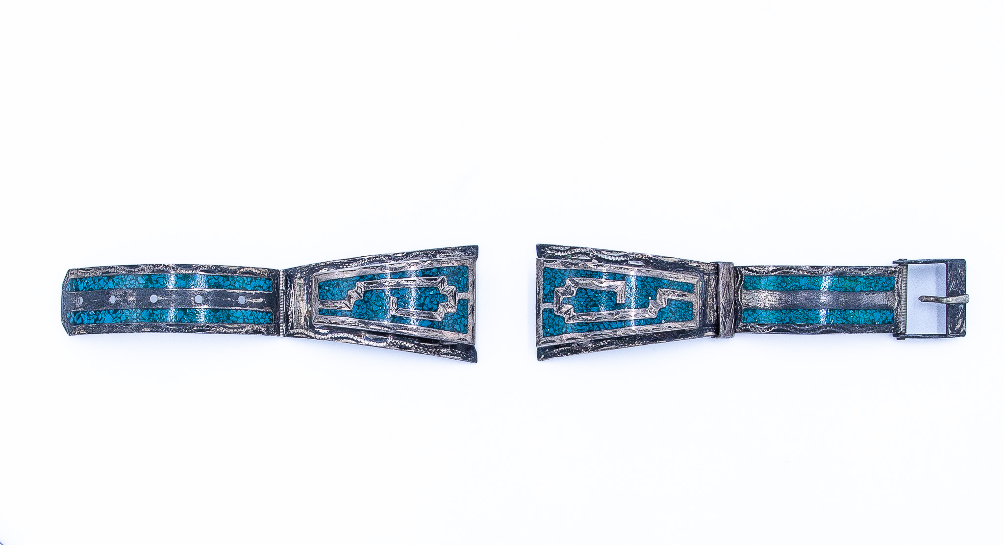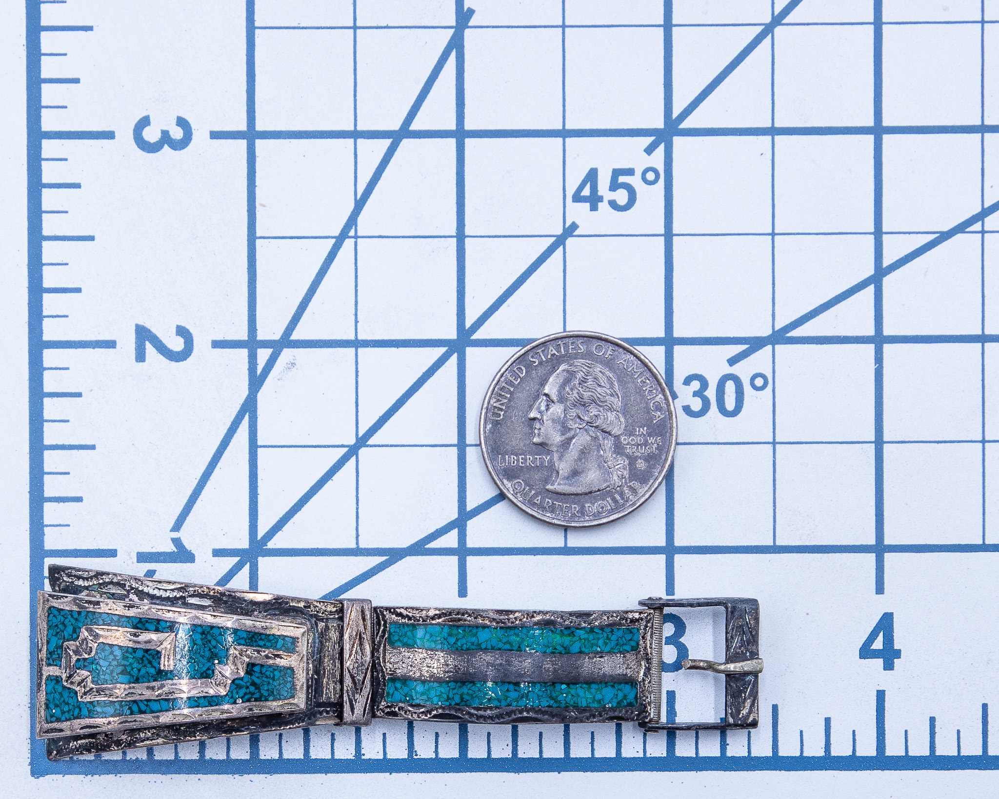 Signed JSL Mexico Crushed Turquoise Sterling Watch Nibs Band 26.5g