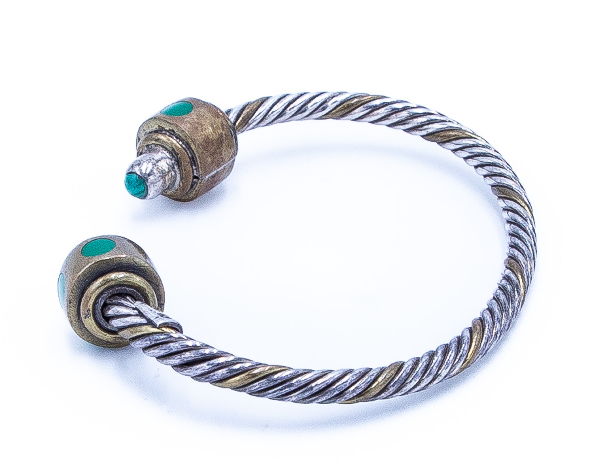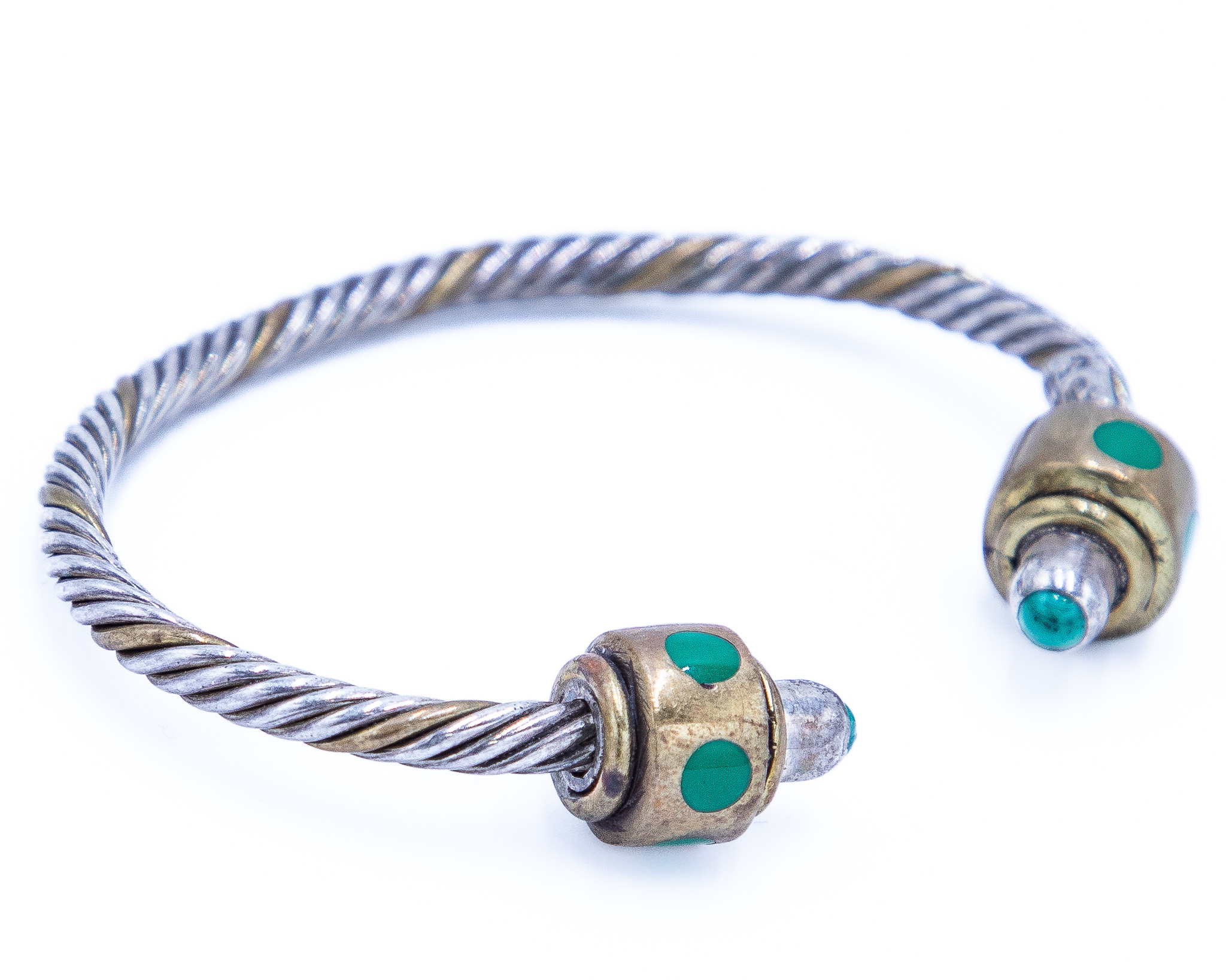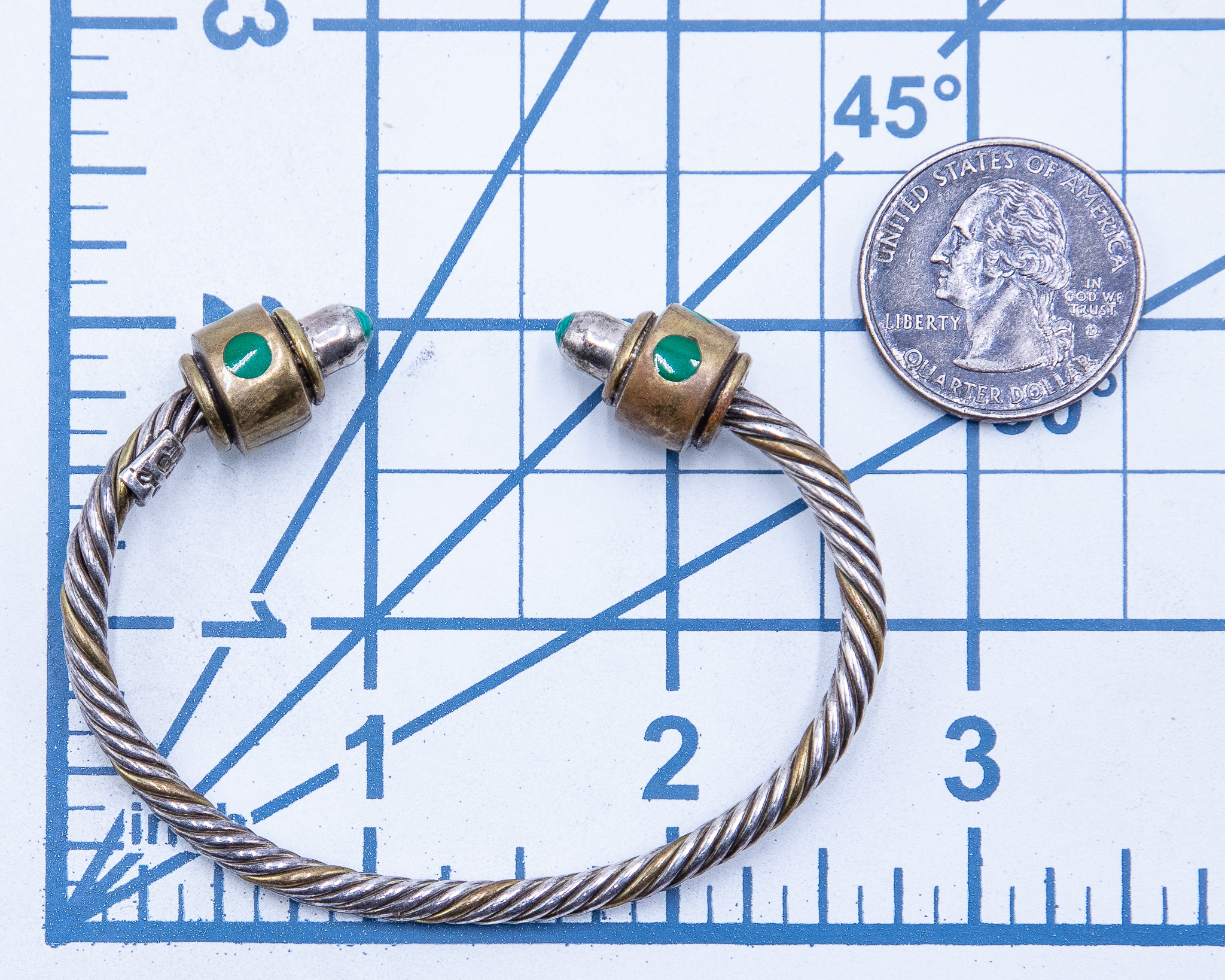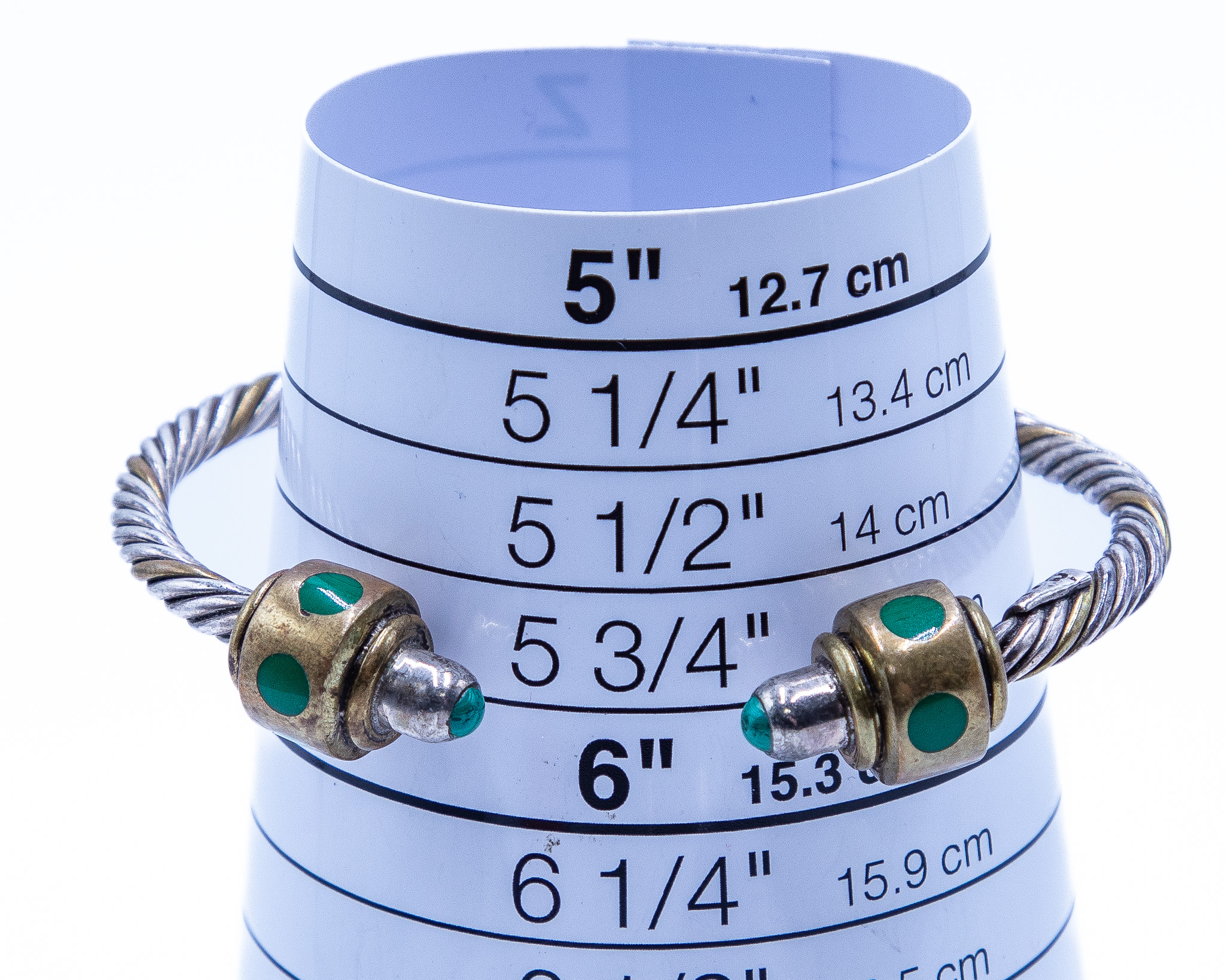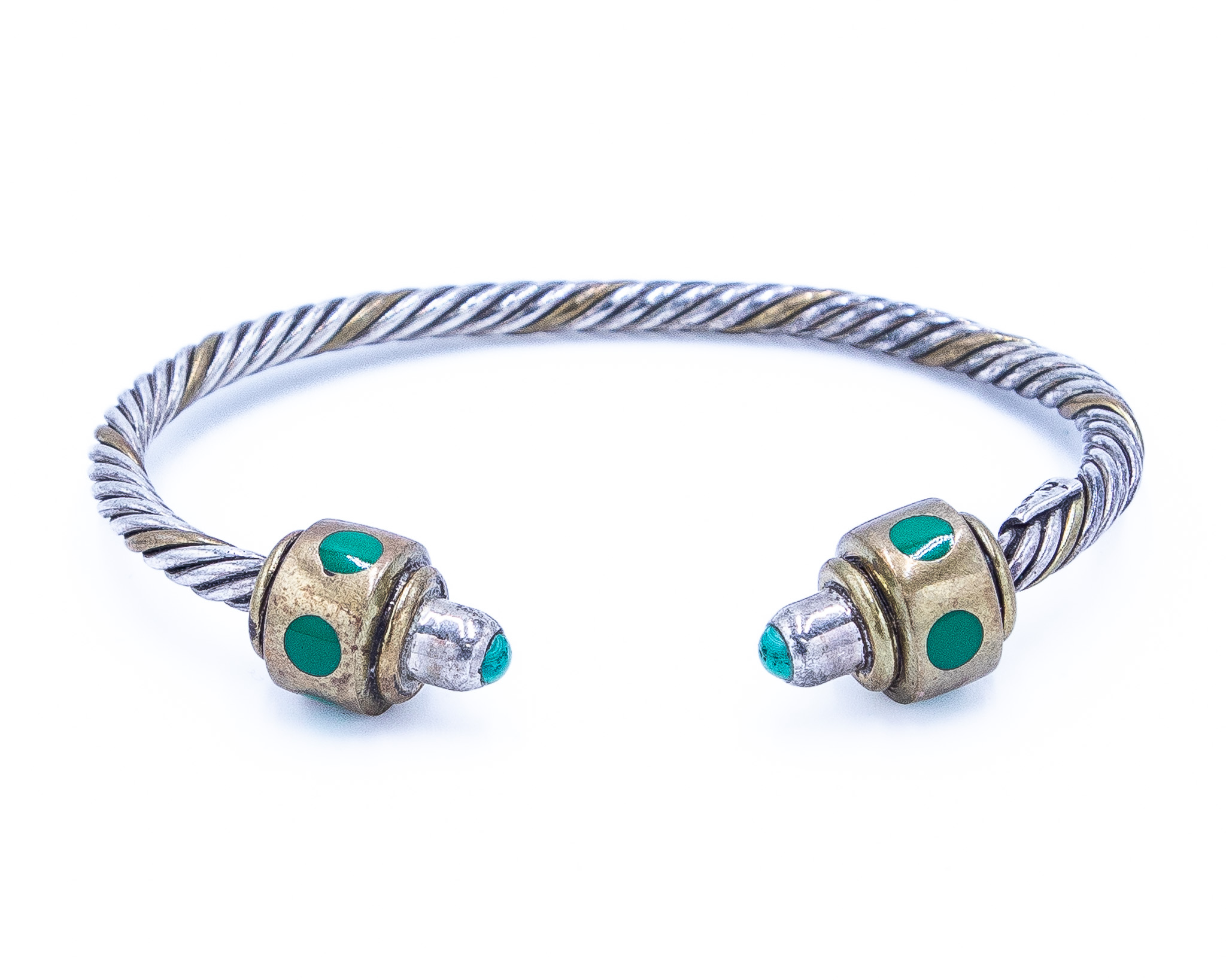 Signed TD-42 Taxco Mexico Malachite Sterling Twist Cuff Bracelet 26g