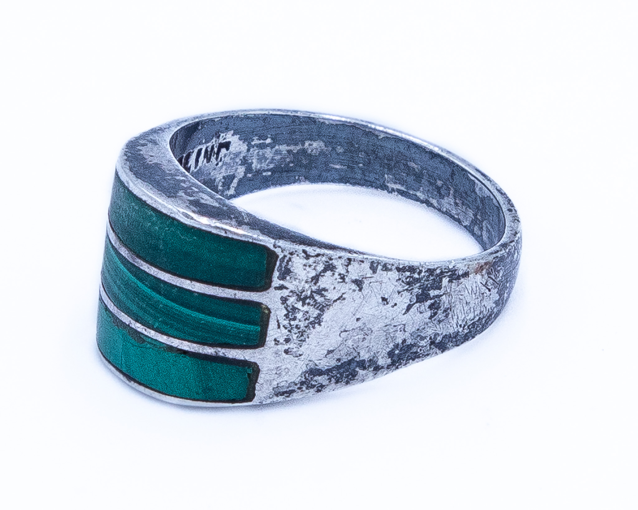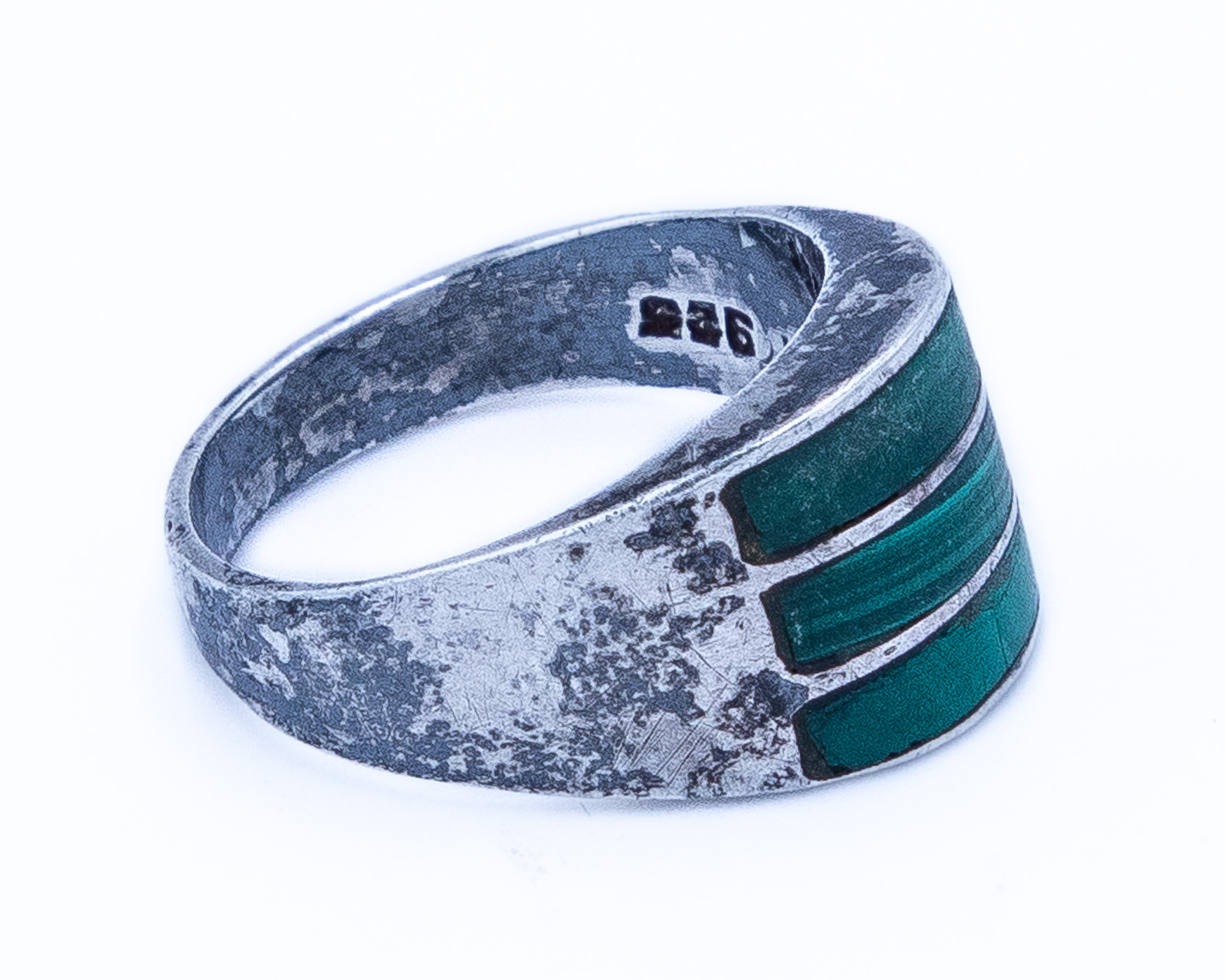 Vintage Mexico Malachite Sterling Inlay Ring Sz 6.25, 5g