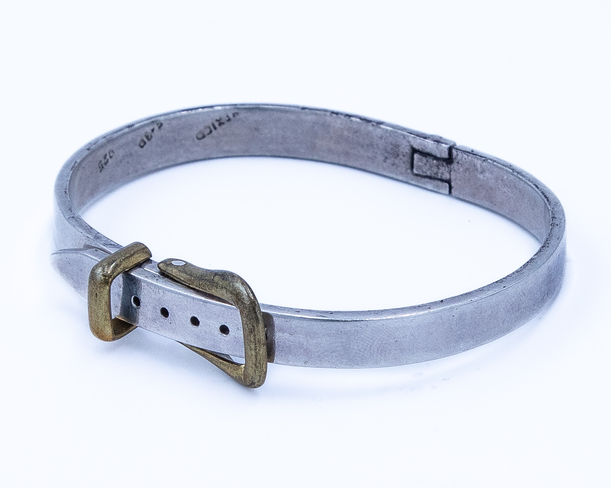 Signed TS-90 Taxco Mexico Sterling Belt Like Hinge Bracelet 36g