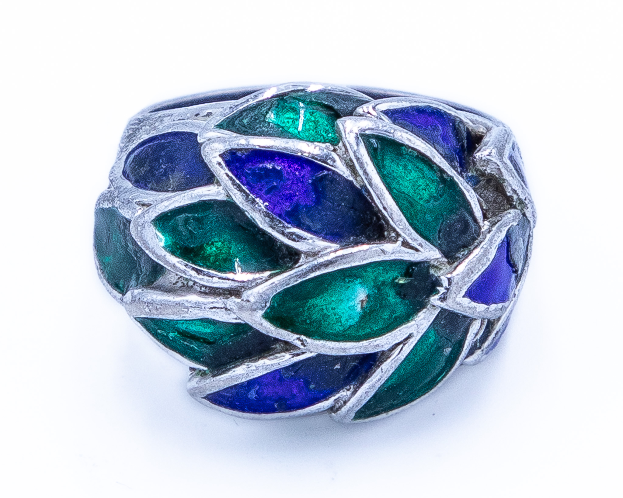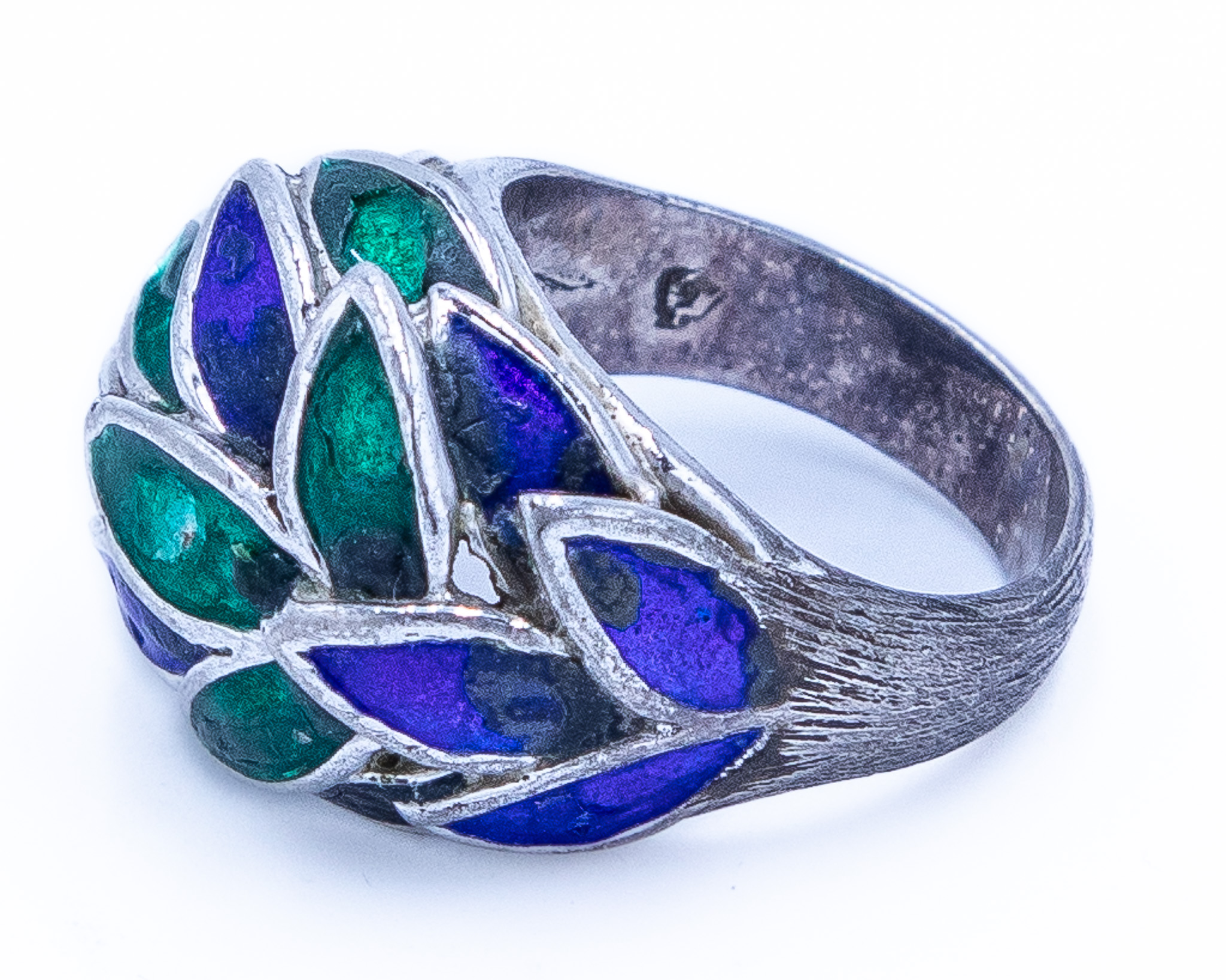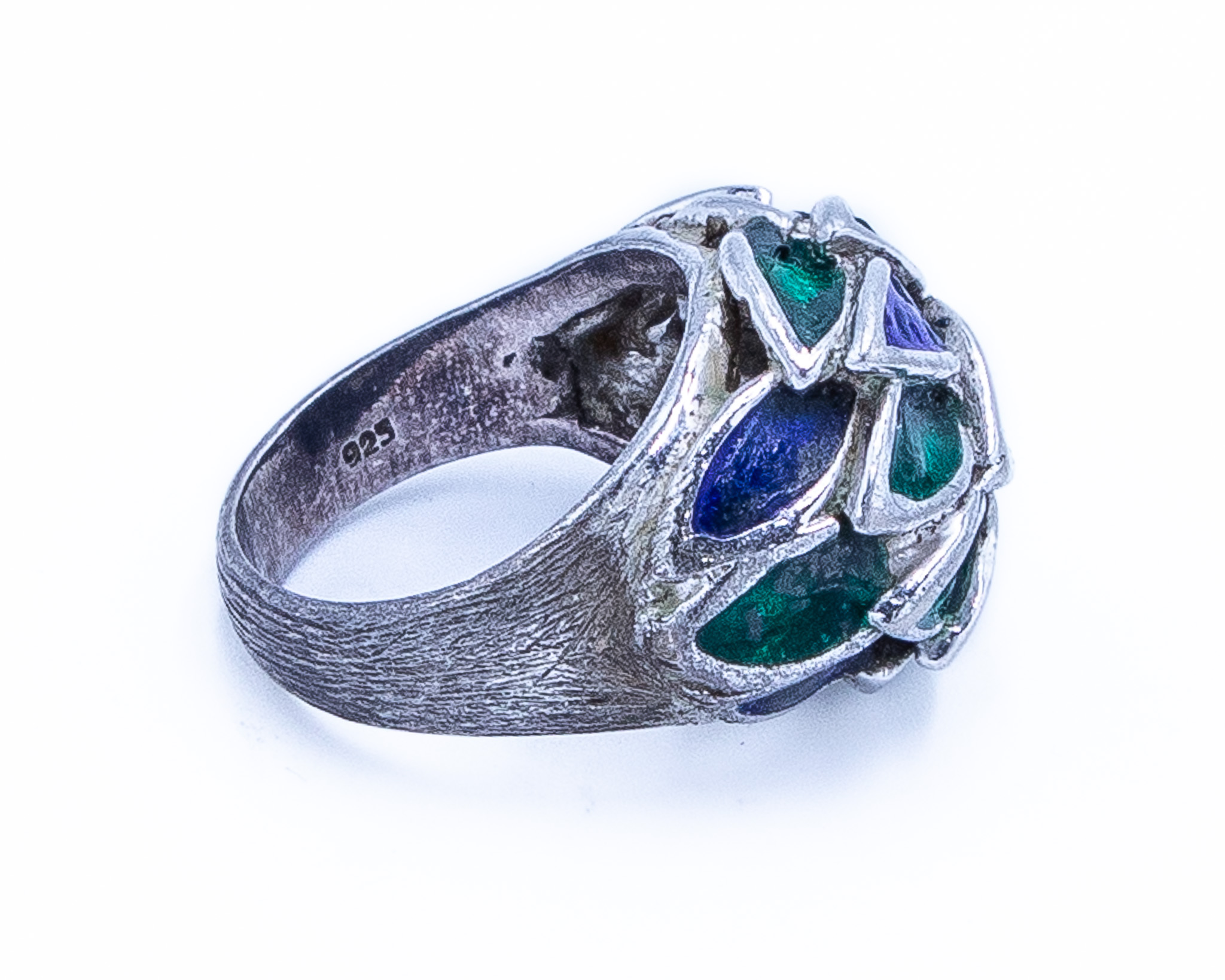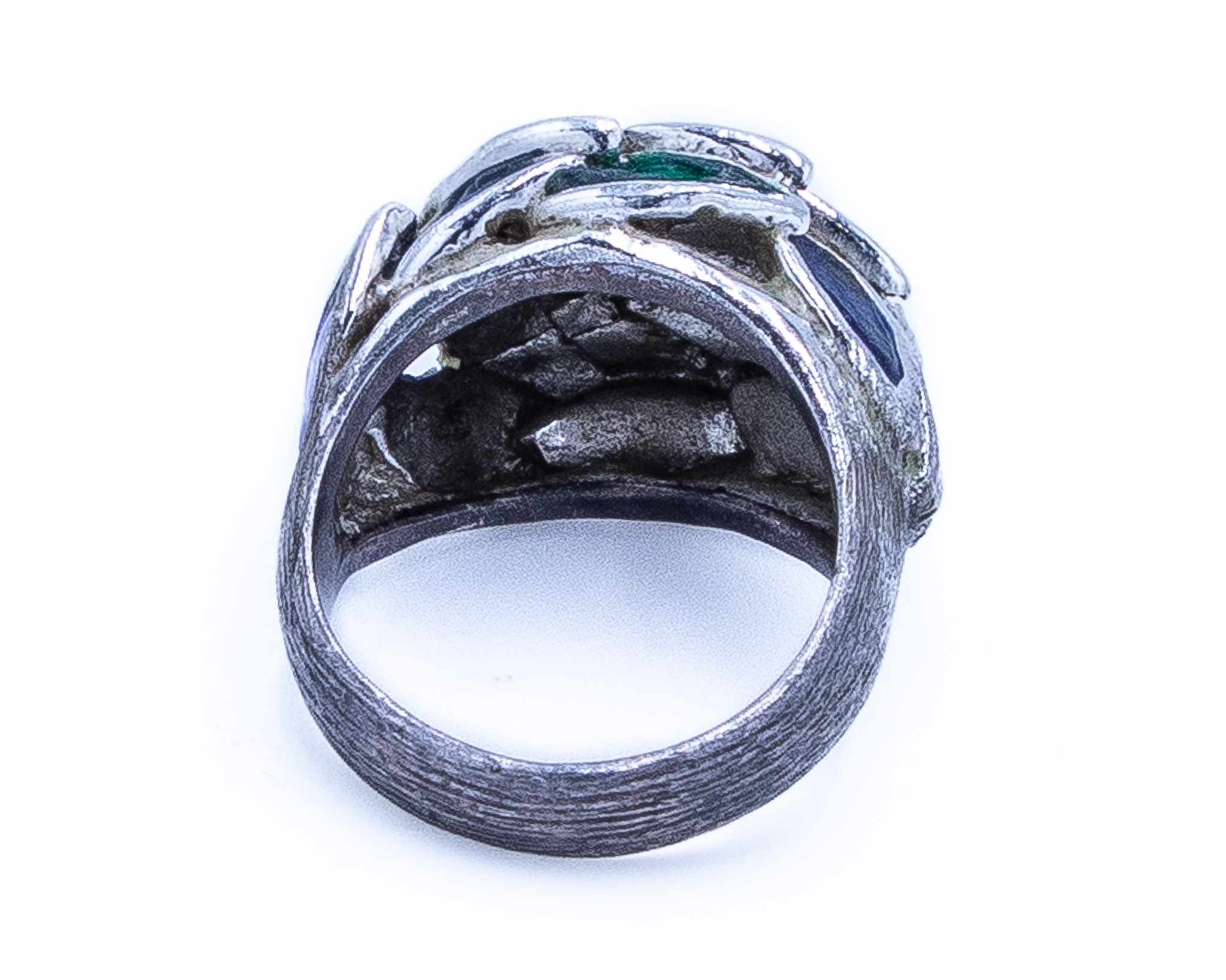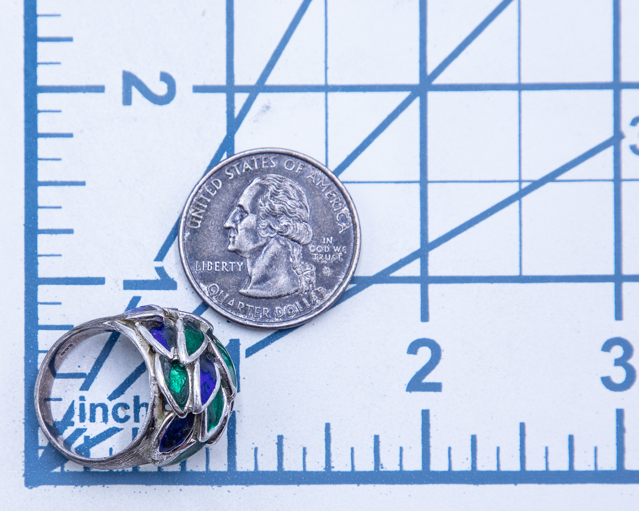 Vintage Mexico Sterling Blue And Green Enamel Painted Eagle 3 Ring Sz 6, 9.5g