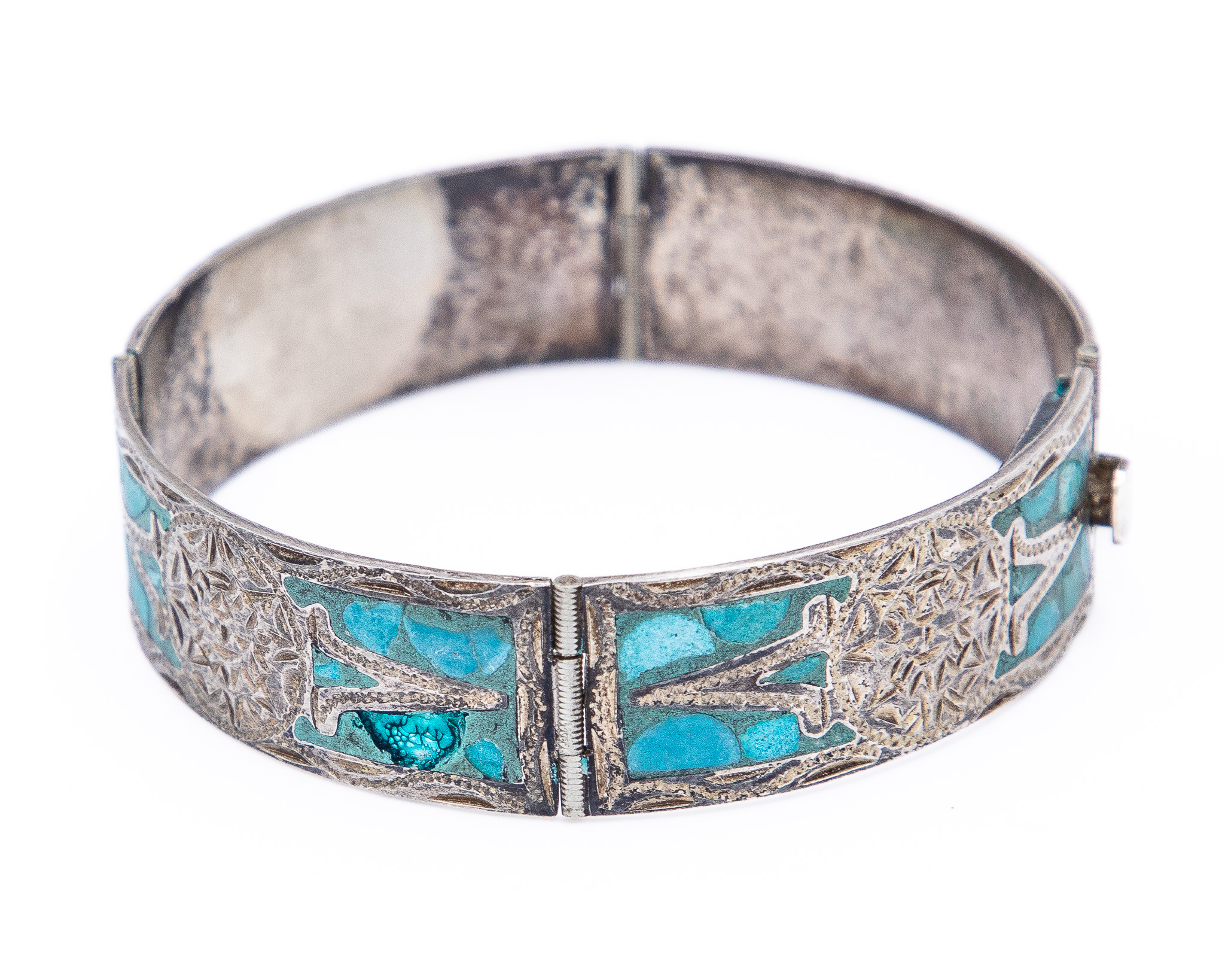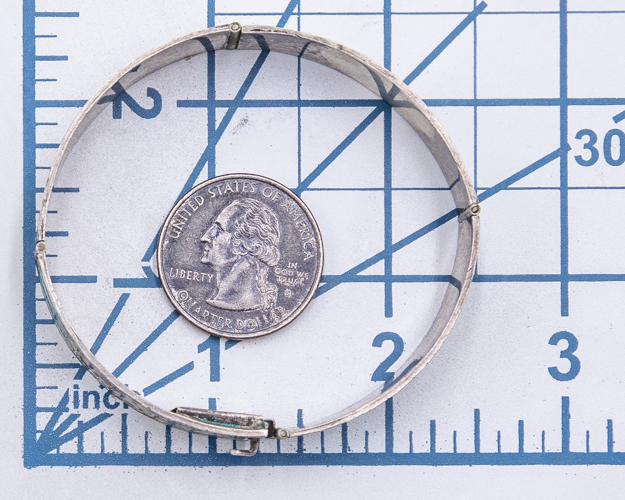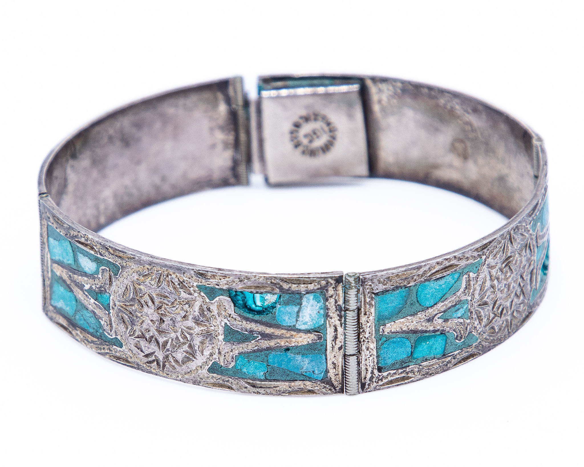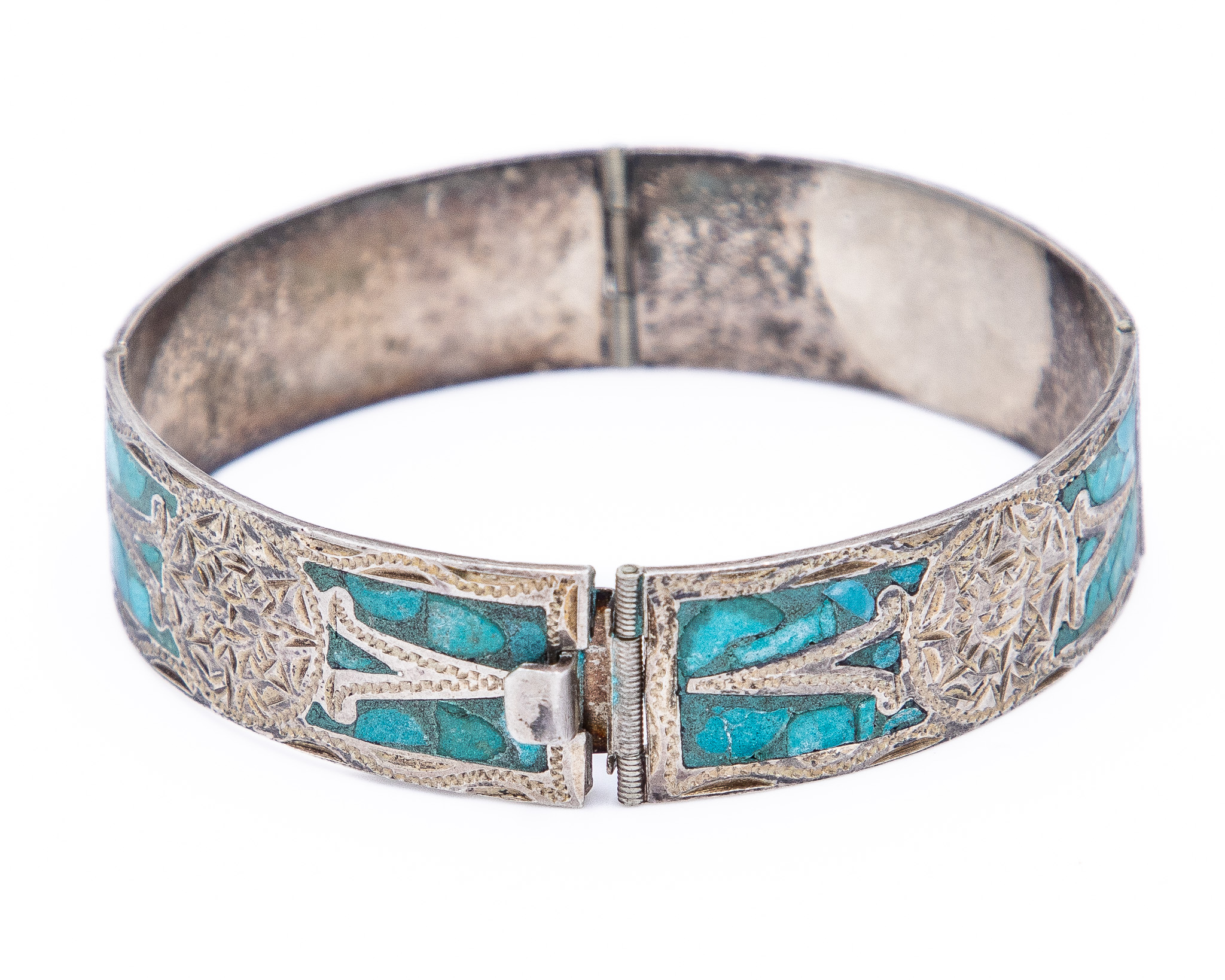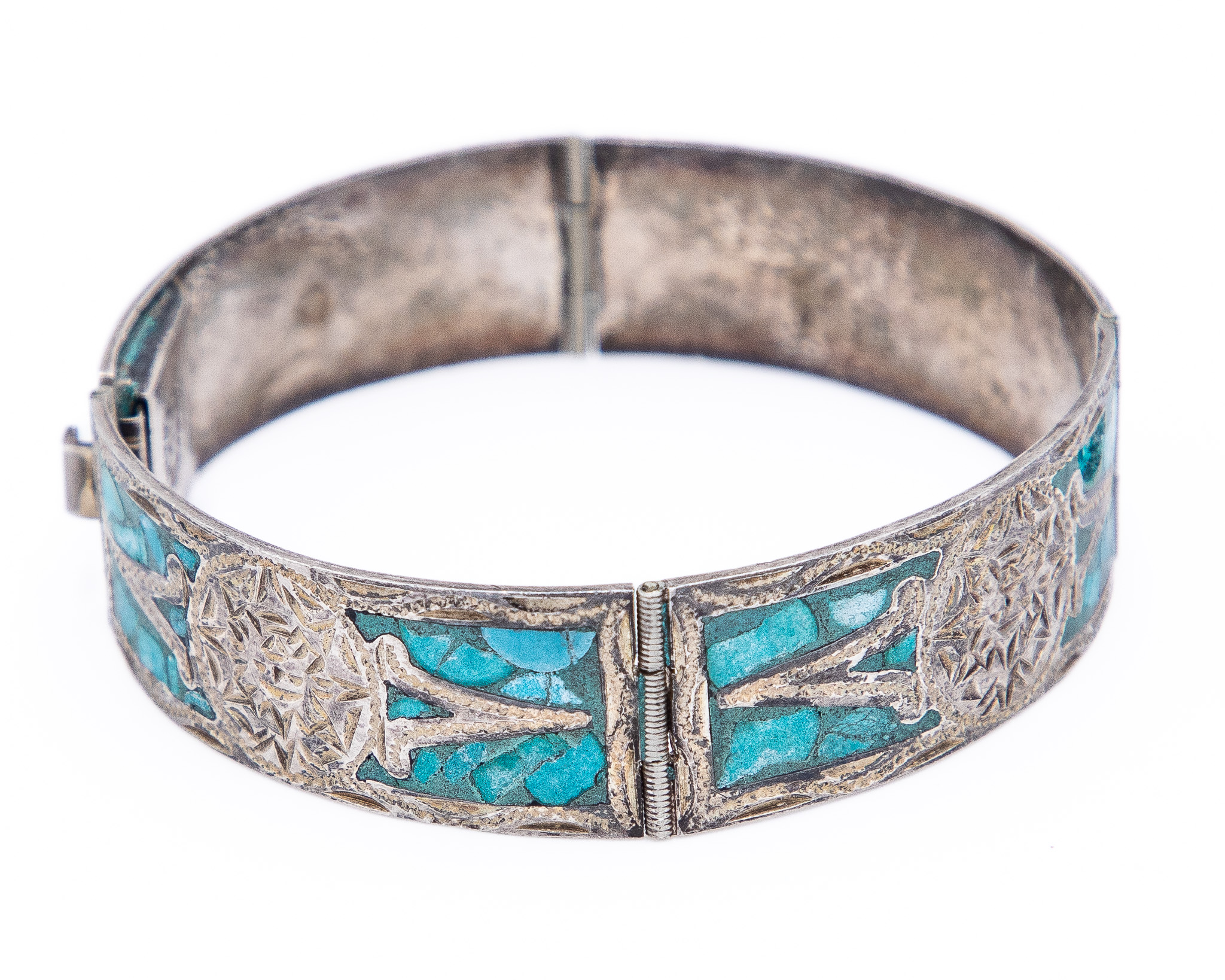 Signed IGC Mexico Crushed Turquoise Sterling Bangle Bracelet As Is 26g-Missing Stone