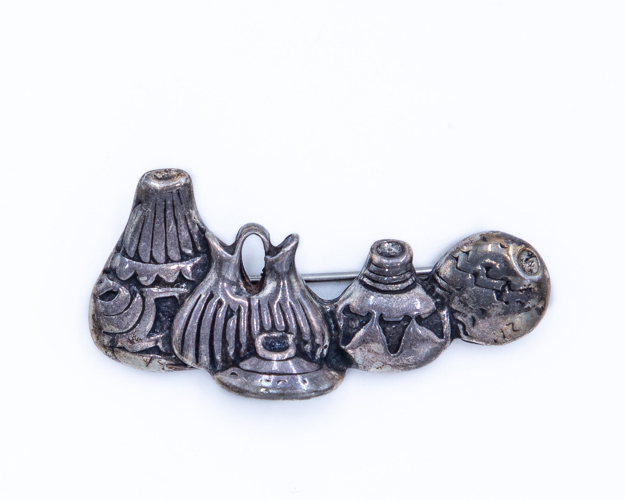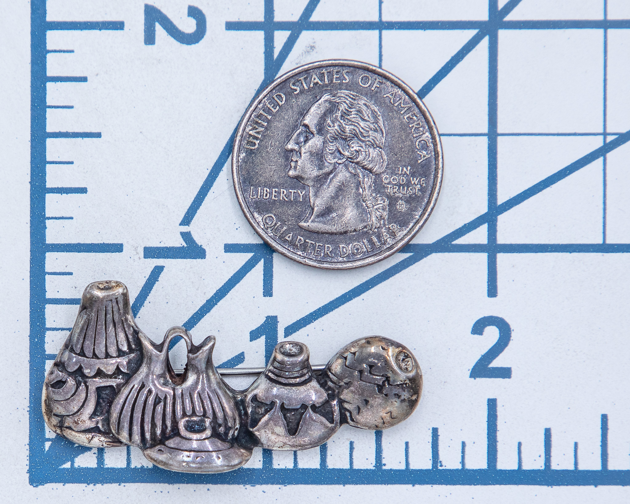 Signed Vintage Sterling Pots Brooch 9g-Illegible Signature