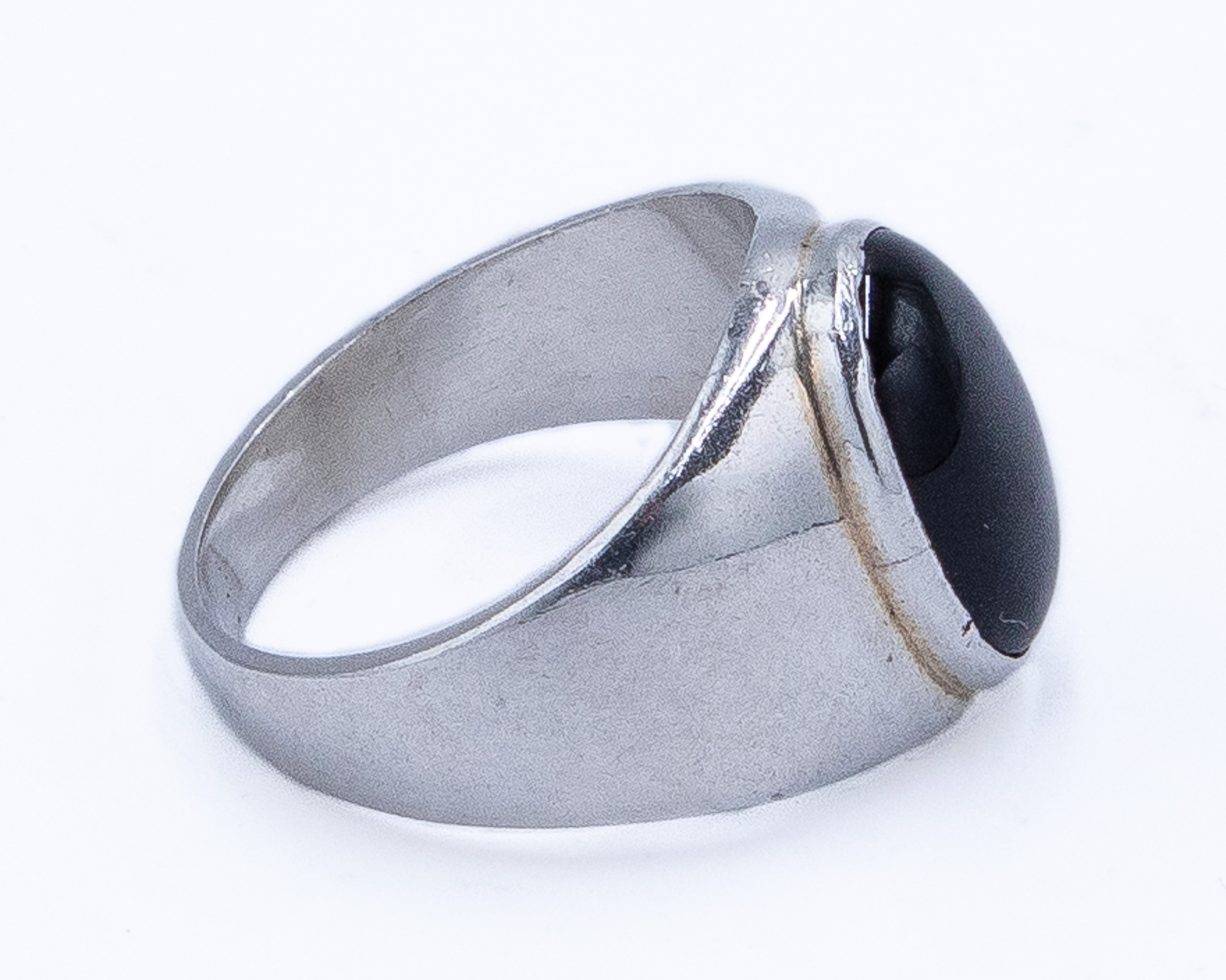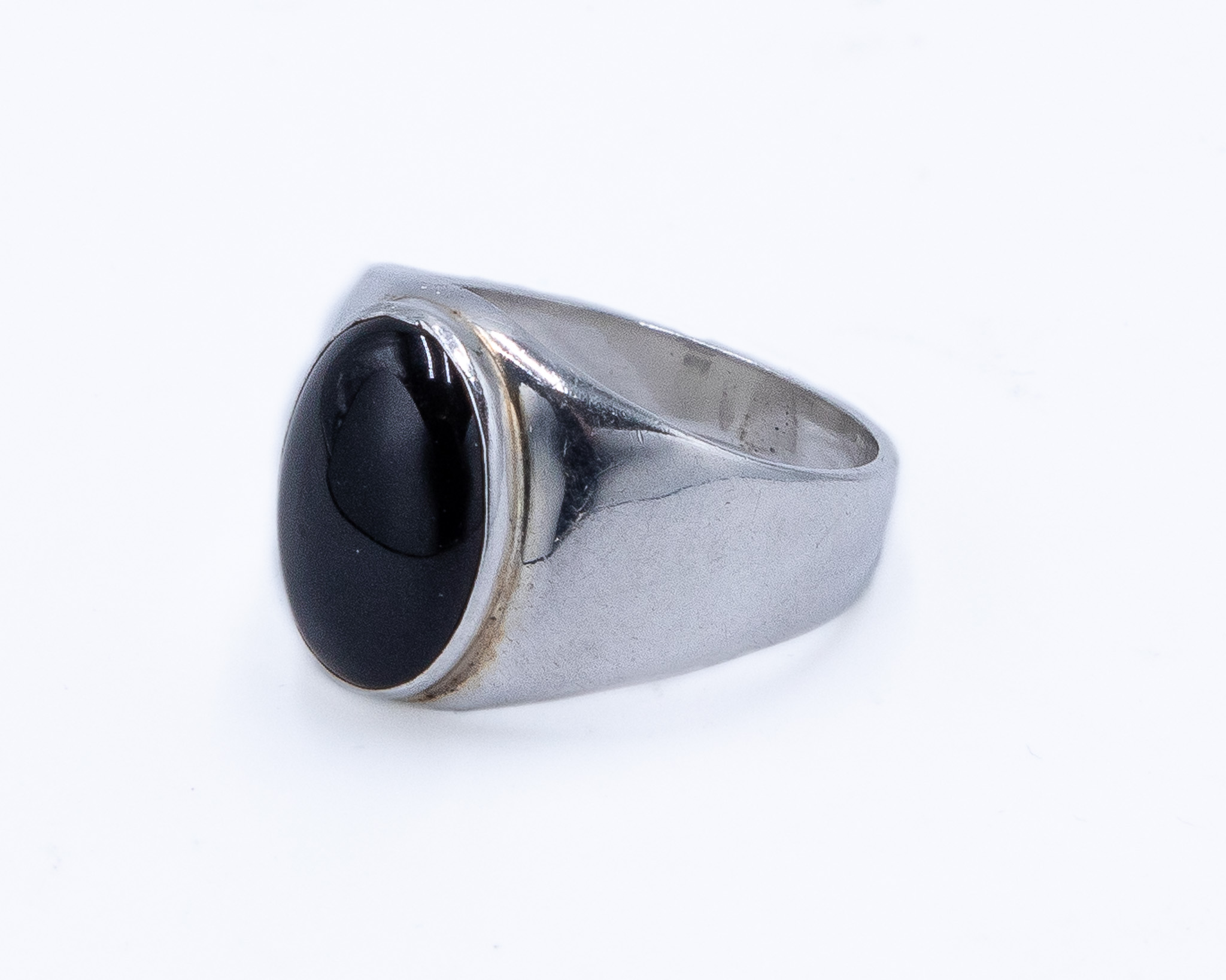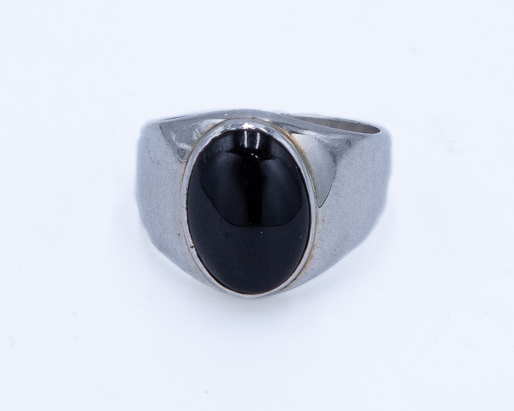 Signed CII Mexico Sterling Onyx Ring Sz 8.25, 9g