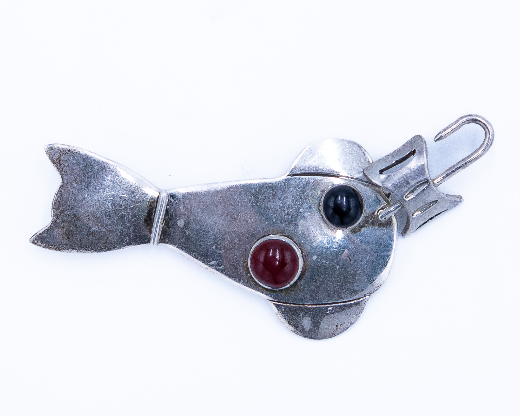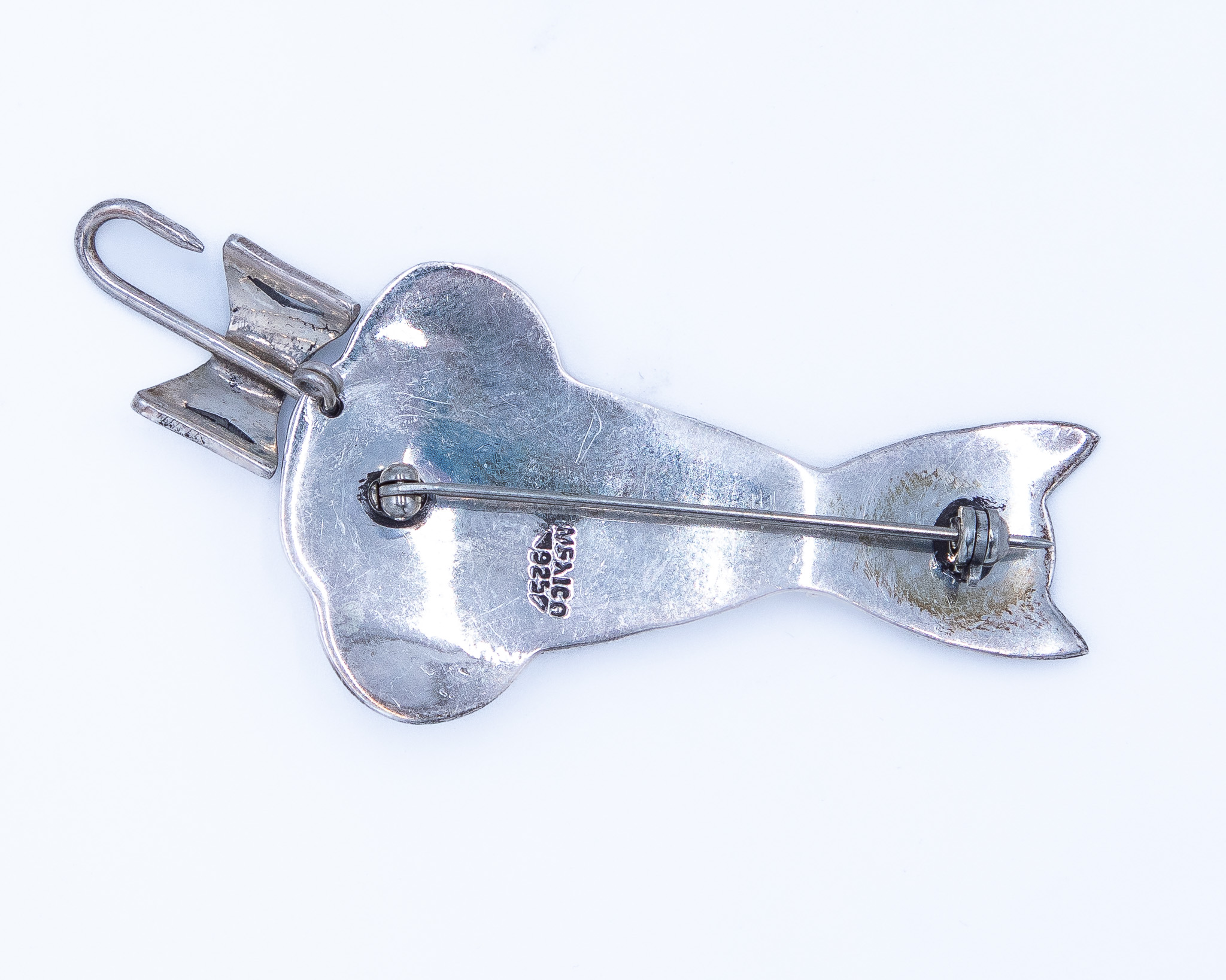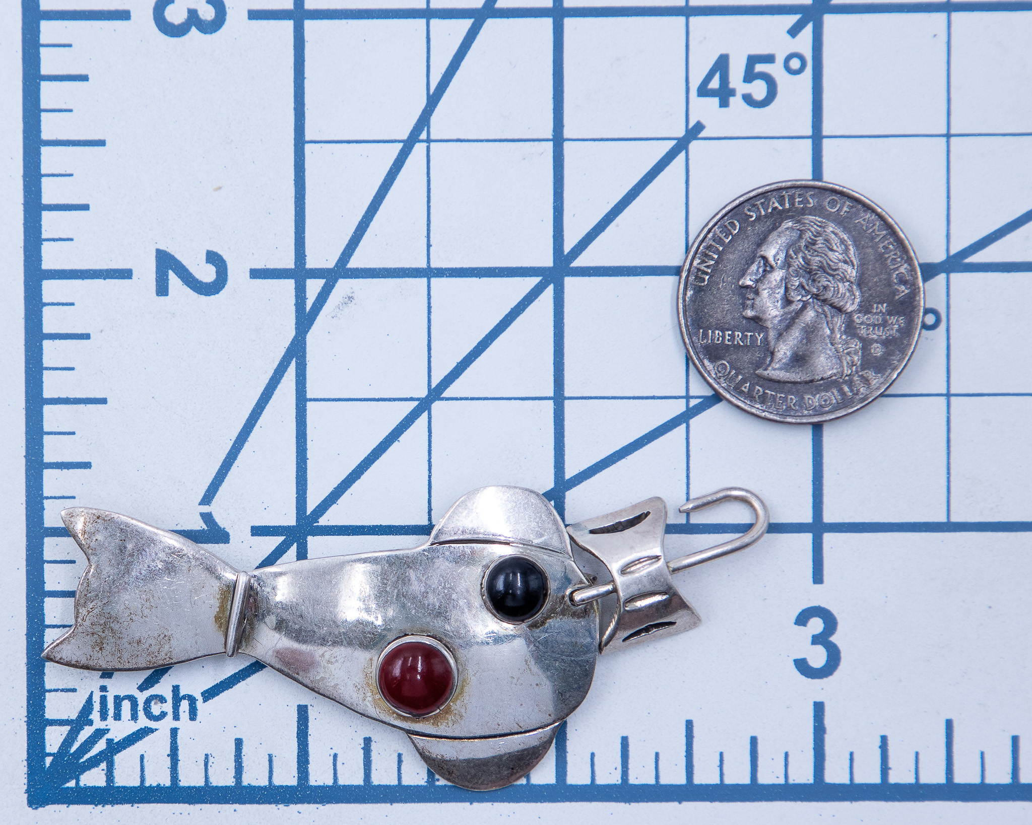 Vintage Mexico Coral Onyx Swinging Tail Cat Brooch 12.5g