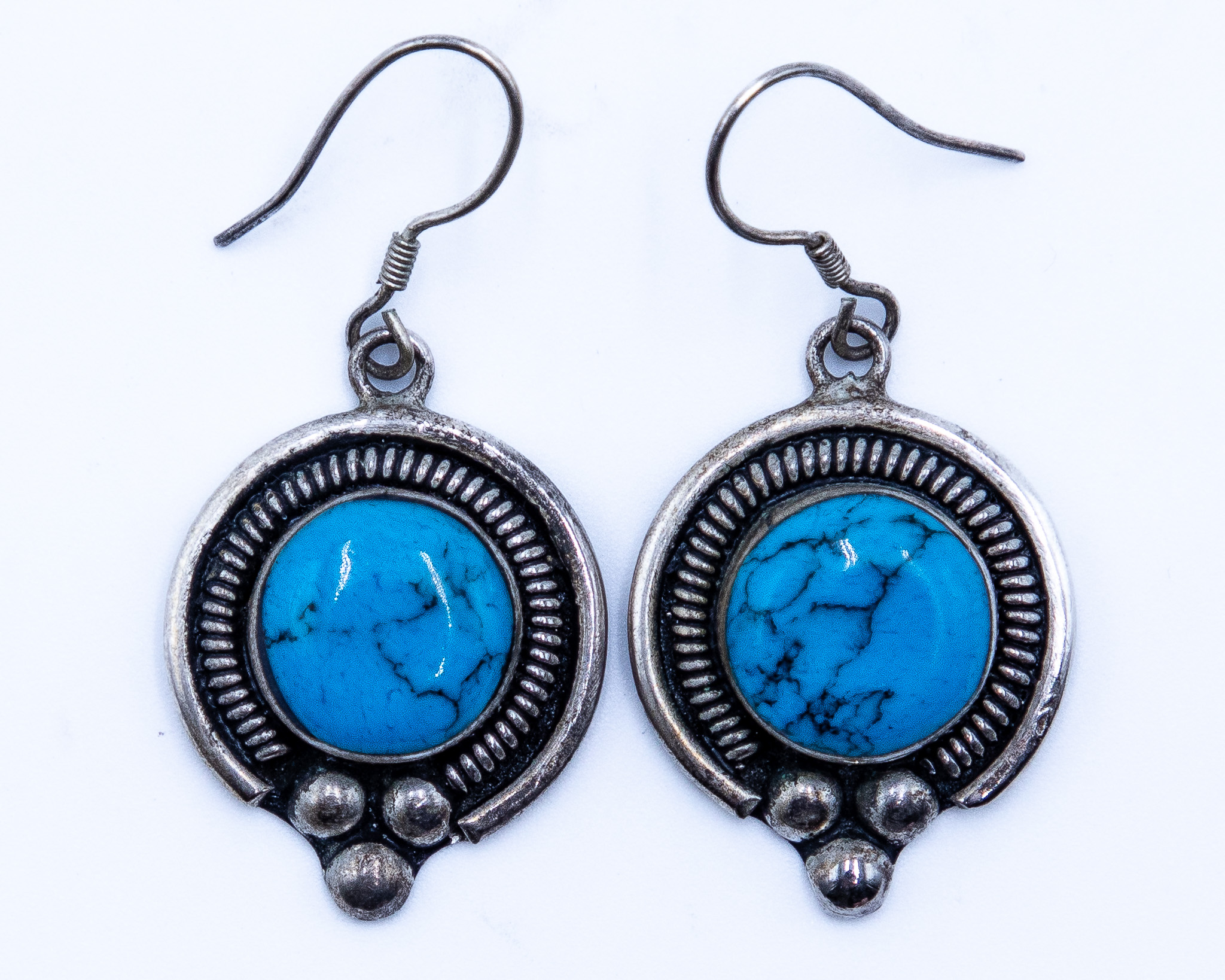 Vintage Mexico Turquoise Sterling Earrings 9.5g