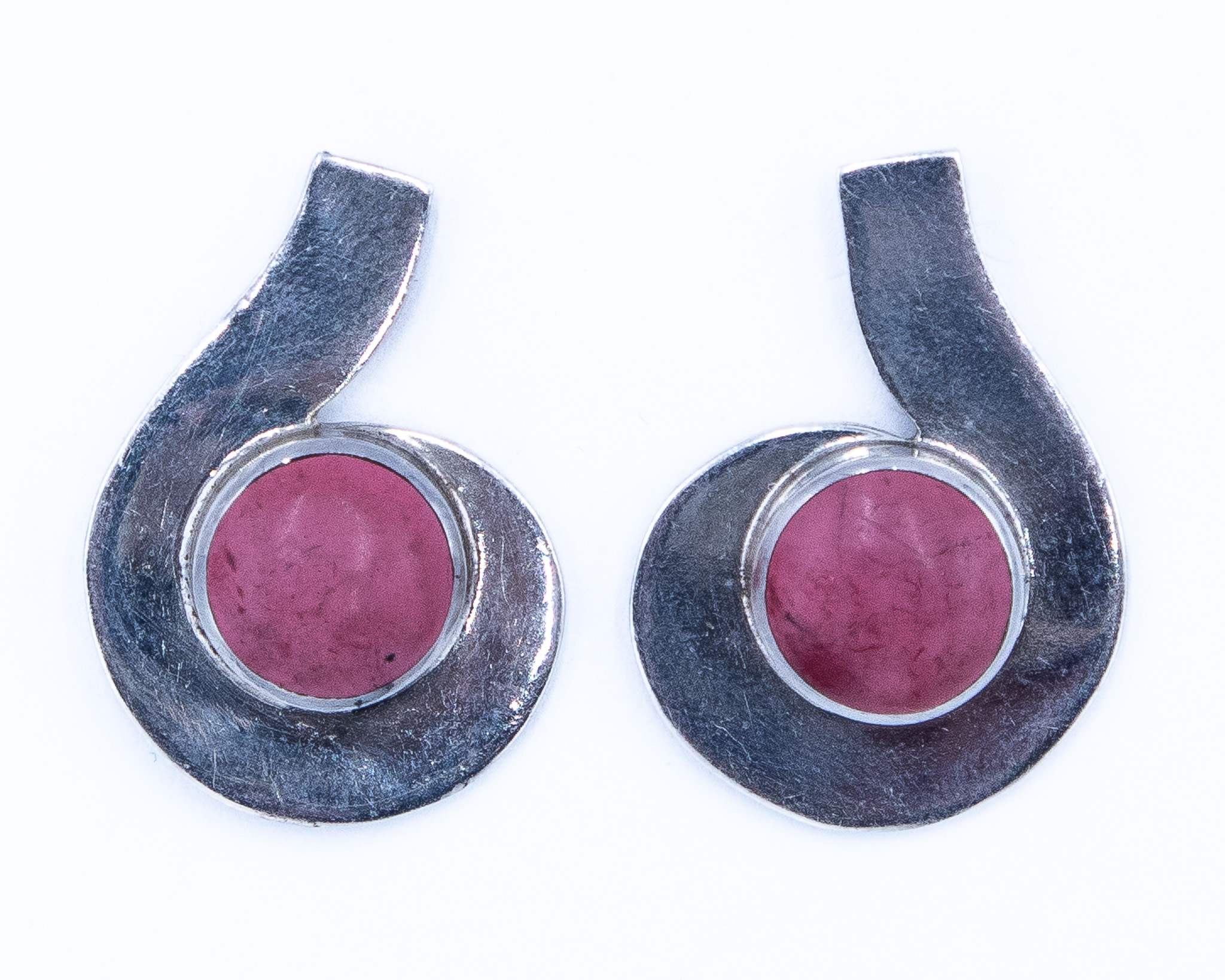 Signed TR-110 Taxco Mexico Pink Stone Sterling Spiral Earrings 17g