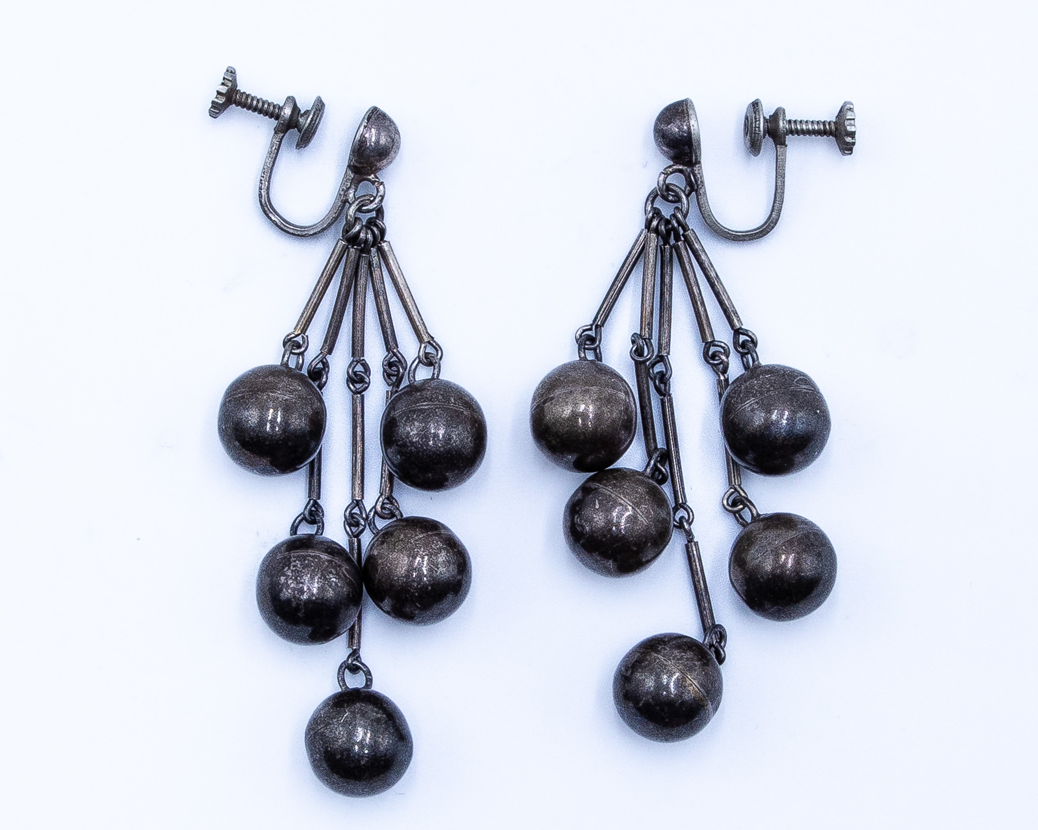 Signed Tlaquiltenango MDR Sterling Bench Bead Dangle Earrings 11g