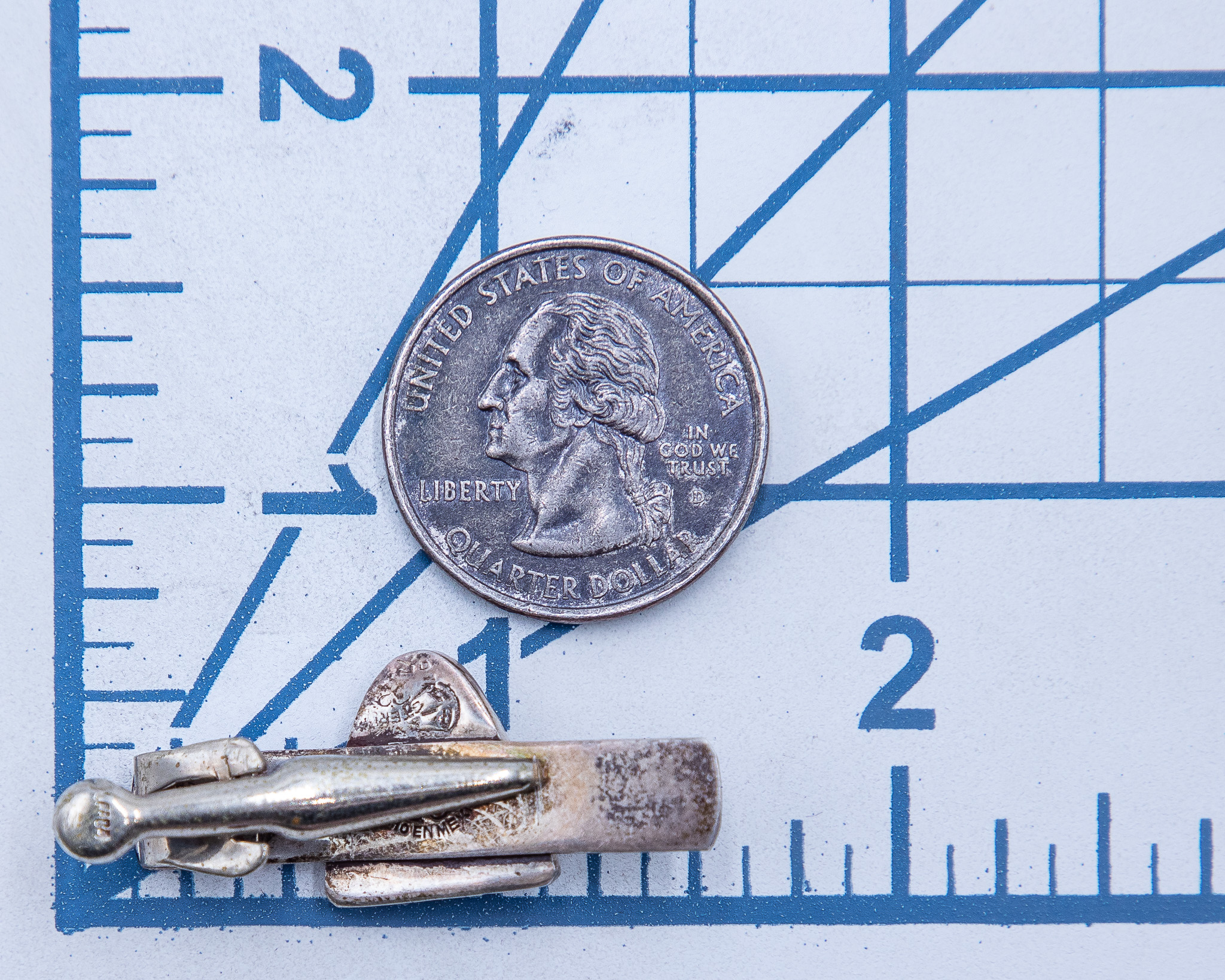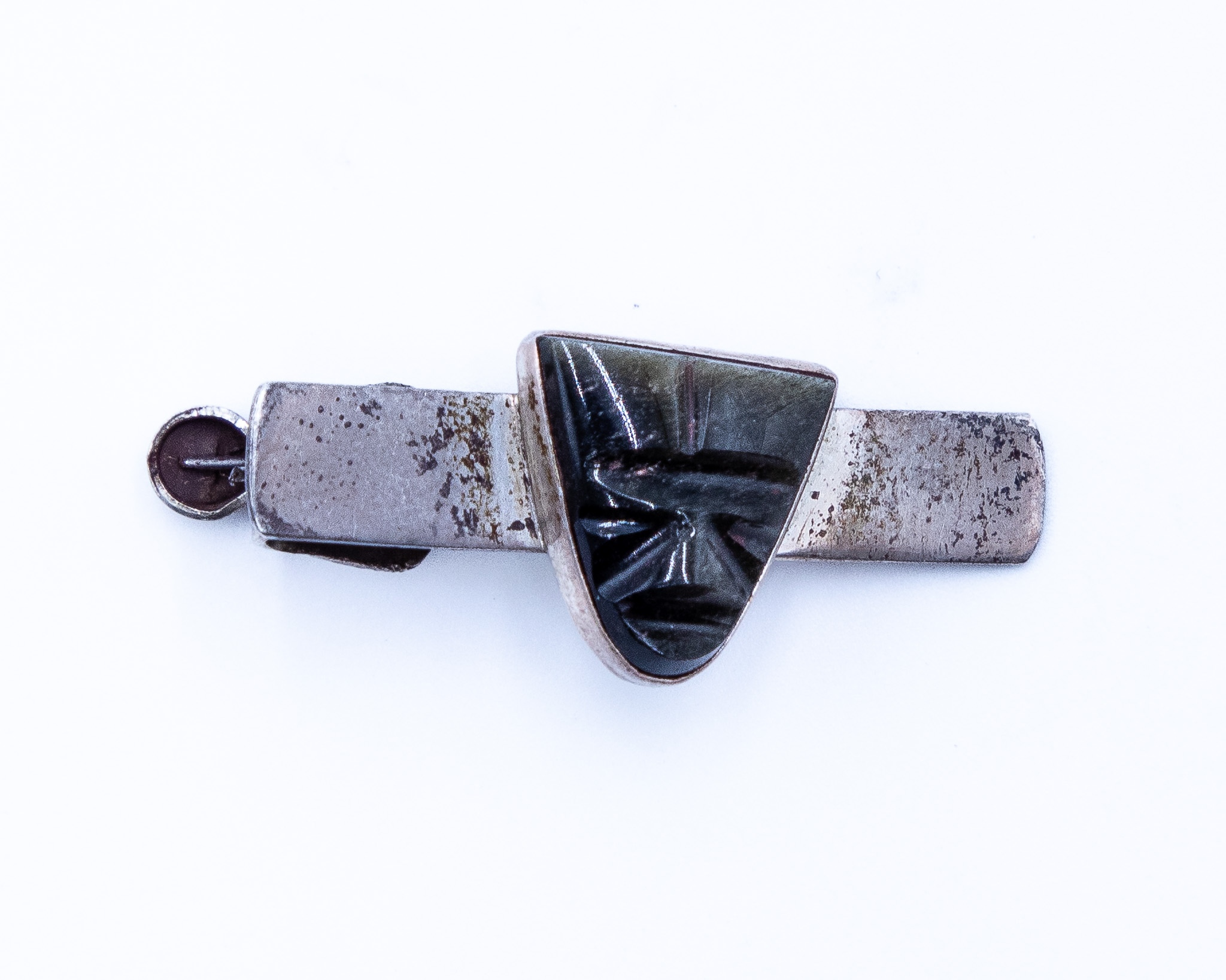 Signed CP Mexico Black Tigers Eye Sterling Carved Face Tie Clip 5.5g