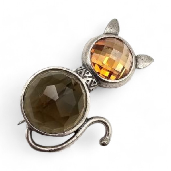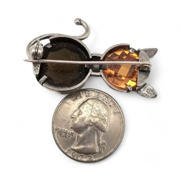 “LENO” Cushion Cut Rhinestone Sterling Silver Cat Brooch 12.8 G