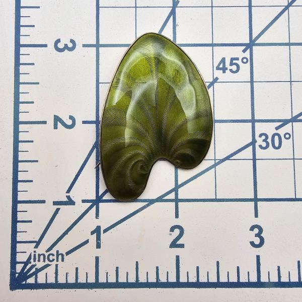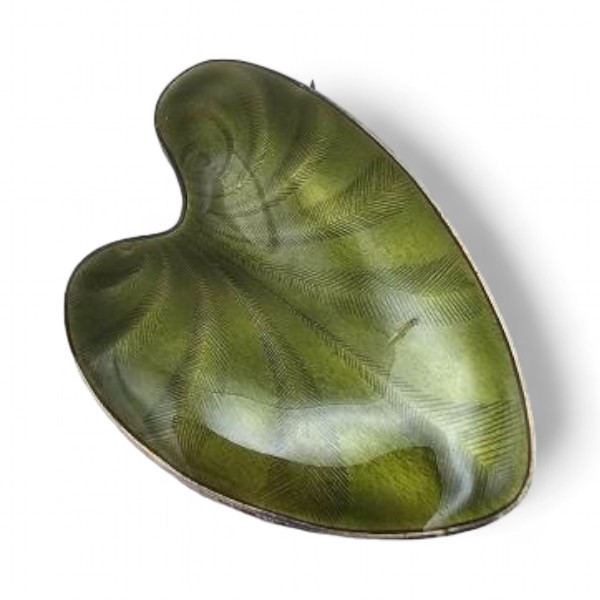Norway SV Guilloche Enamel Sterling Silver Olive Green Lilly Pad Leaf Brooch 15.8 G
