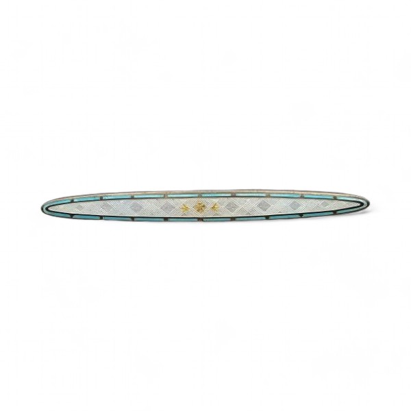 Norway Guilloche Enamel Sterling Silver Blue and White Bar Pin 5 G