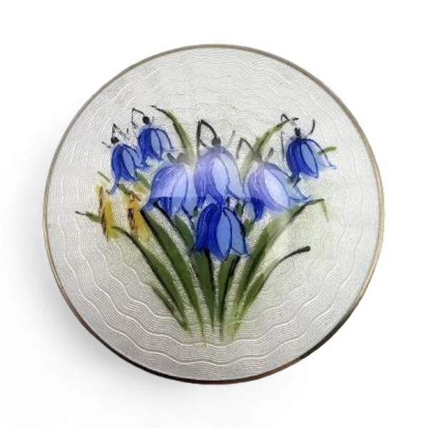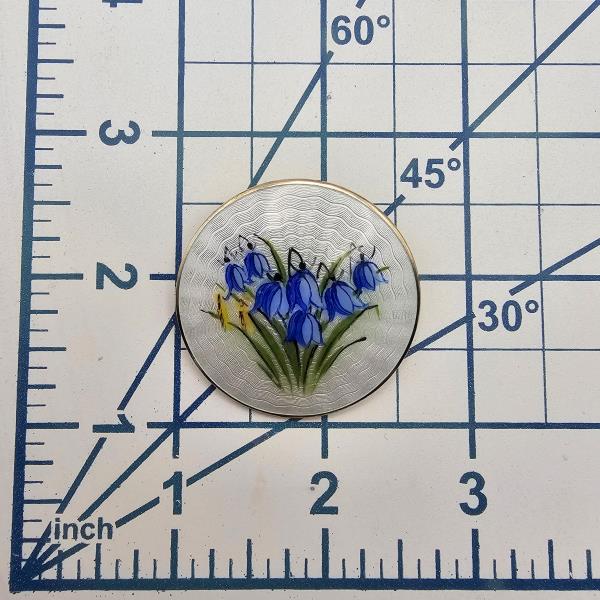 Norway SV Guilloche Enamel Sterling Silver Bluebell Flower Brooch 16.5 G