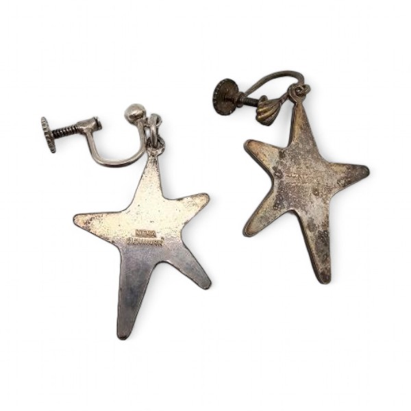 Denmark MEKA Guilloche Enamel Sterling Silver Blue Star Drop Earrings 6.2 G