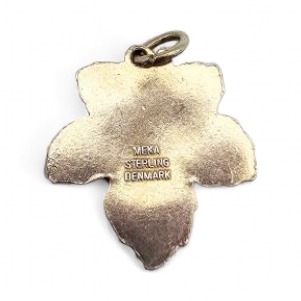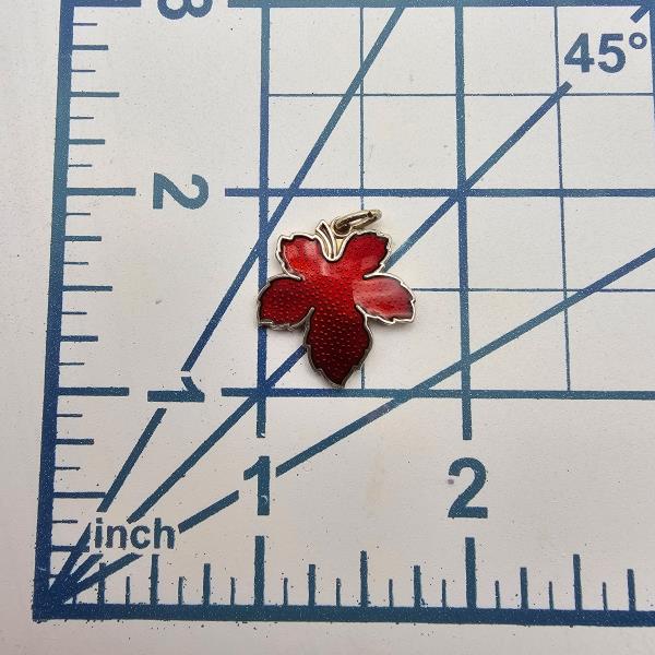 Denmark MEKA Guilloche Enamel Sterling Silver Red Maple Leaf Pendant 2.8 G