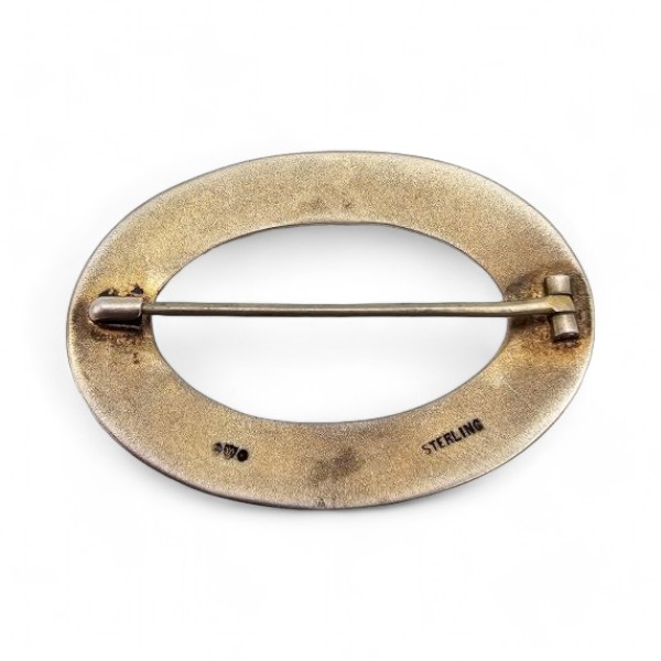 Norway N.M. Thune Guilloche Enamel Sterling Silver Oval Brooch 16.8 G