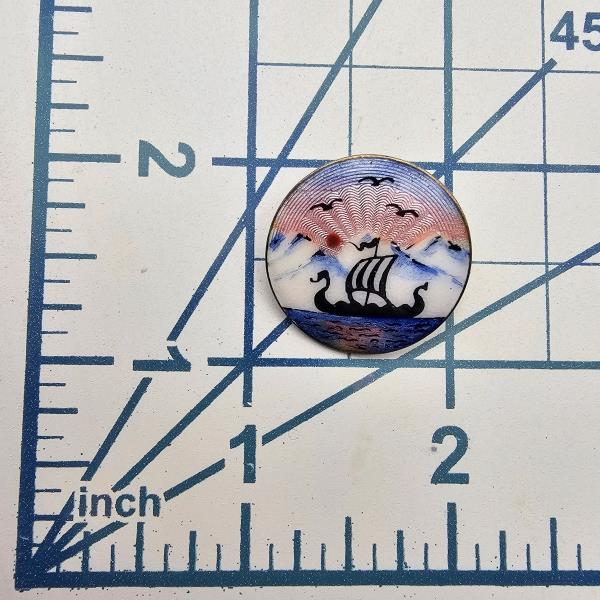 Norway Andersen & Scheinpfleg Guilloche Enamel Sterling Silver Viking Ship Scene Brooch 5.5 G
