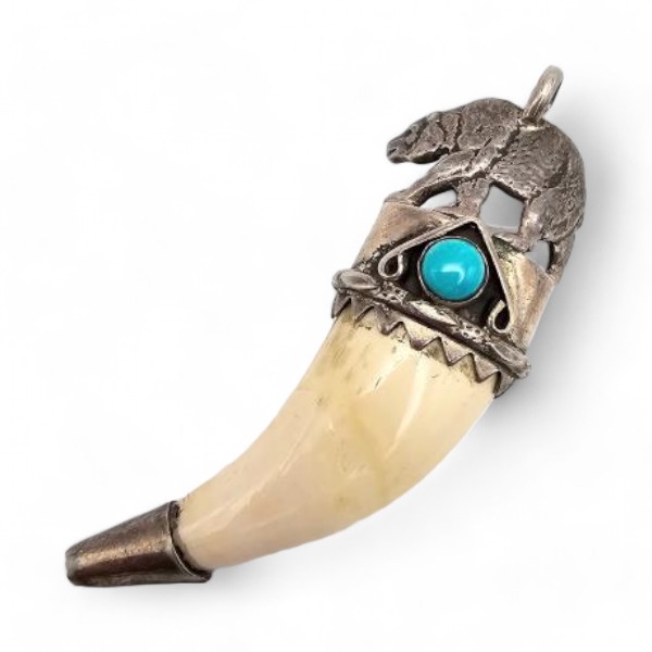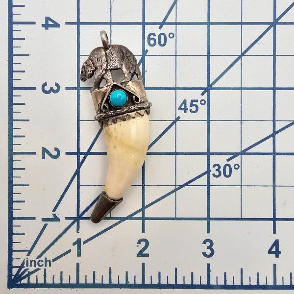 Turquoise Bone Sterling Silver Southwestern Bear Pendant 18.7 G