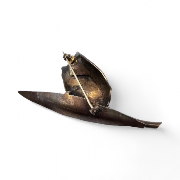 Norway Hroar Prydz Guilloche Enamel Sterling Silver Tulip Flower Brooch 11.8 G