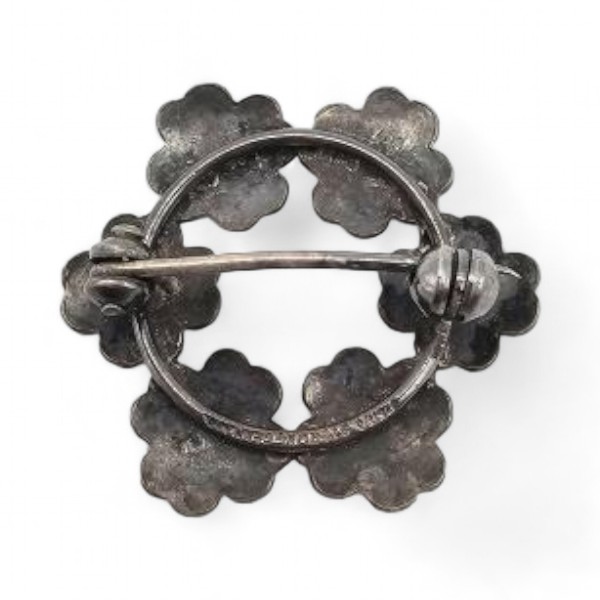 signed Denmark Guilloche Enamel Sterling Silver Yellow Circle Brooch 3.7 G
