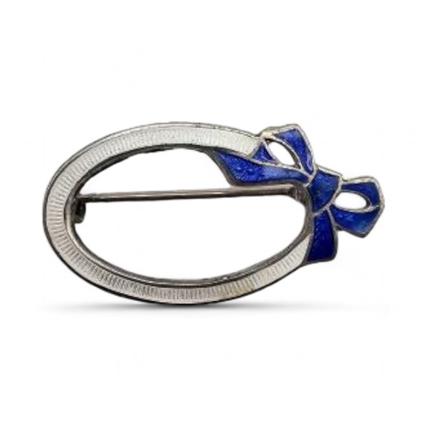 Vintage Enamel Sterling Silver Bow Brooch 1.8 G