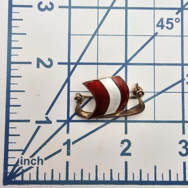 Norway EM Einar Modahl Guilloche Enamel Sterling Silver Viking Ship Brooch 5.1 G