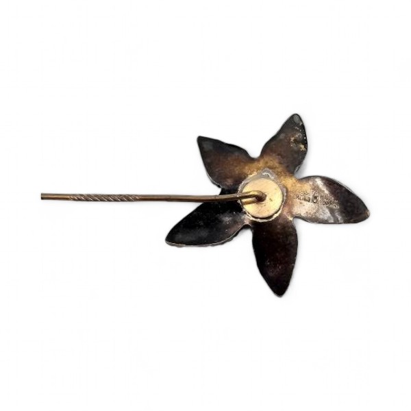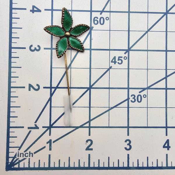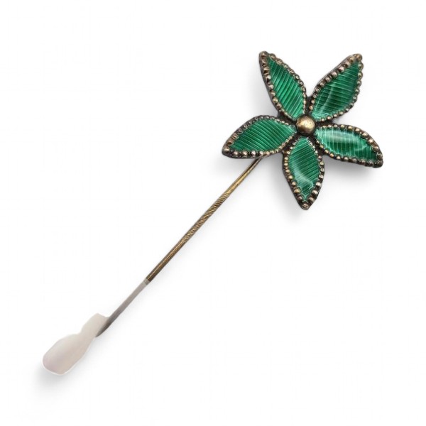 Norway Bernard Meldahl Guilloche Enamel Sterling Silver Green Flower Lapel Stick Pin 4.7 g
