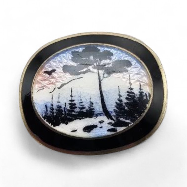 Norway Aksel Holmsen Guilloche Enamel Sterling Silver Winter Scene Brooch 3.4 G