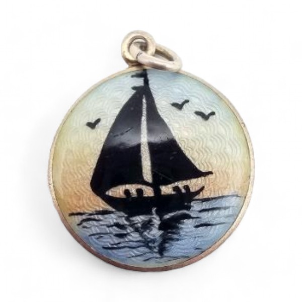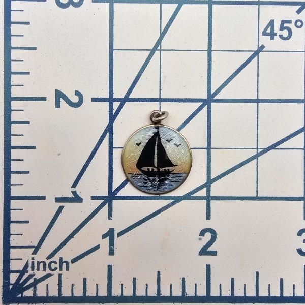 Vintage Enamel Sterling Silver Sailboat Theme Pendant 2.5 G