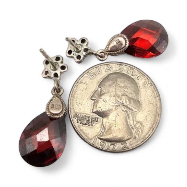 Marcasite Rhinestone Sterling Silver Drop Dangle Earrings 6.5 G