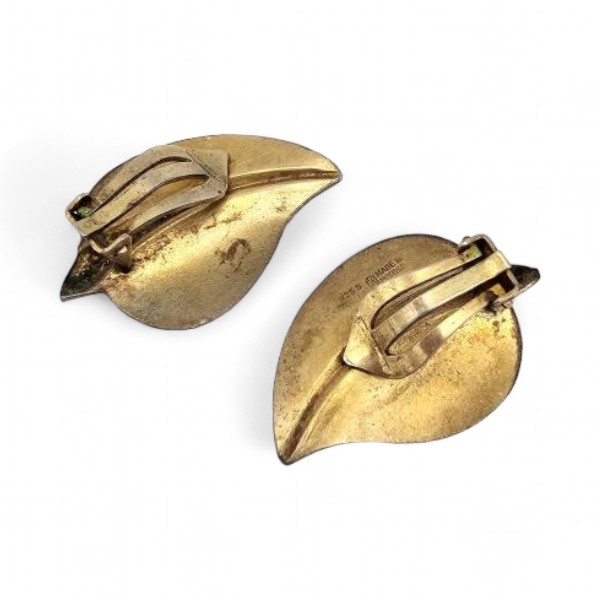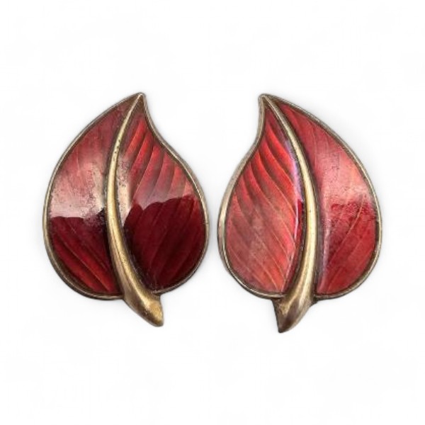 Norway Bernard Meldahl Guilloche Enamel Sterling Silver Red Leaf Earrings 9.8 G