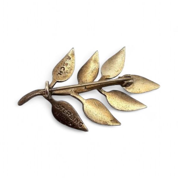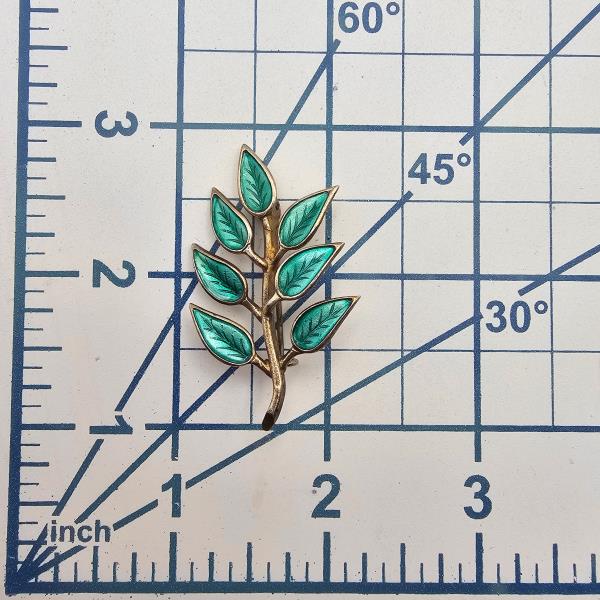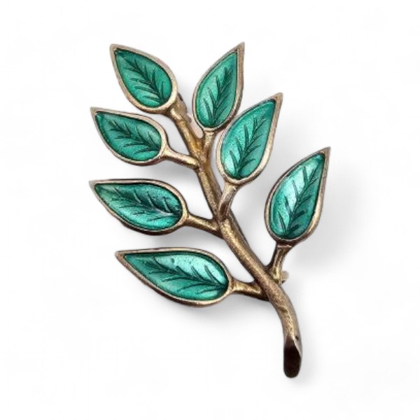 Norway Albert Scharning Guilloche Enamel Sterling Silver Green Leaf Brooch 4.9 G