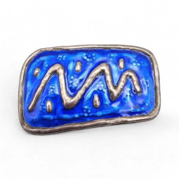 Vintage Oystein Balle Enamel Sterling Silver Blue Mid Century Brooch 15 G