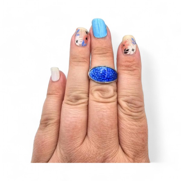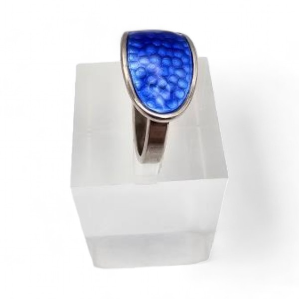Norway Aksel Holmsen Guilloche Enamel Sterling Silver Blue Dot Adjustable Ring 4.5 G