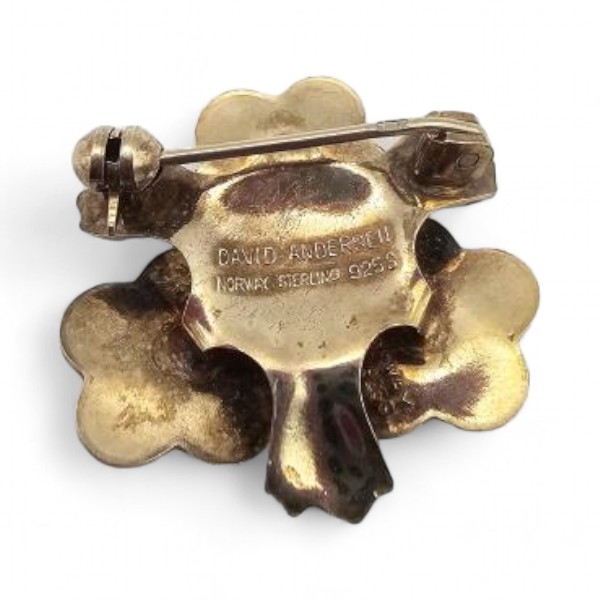 Norway DA David Andersen Guilloche Enamel Sterling Silver Blue Flower Brooch 5.7 G