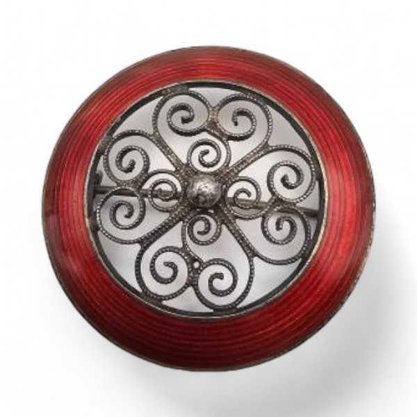 Norway NAJ N.A. Jorgensen Guilloche Enamel Sterling Silver Red Brooch