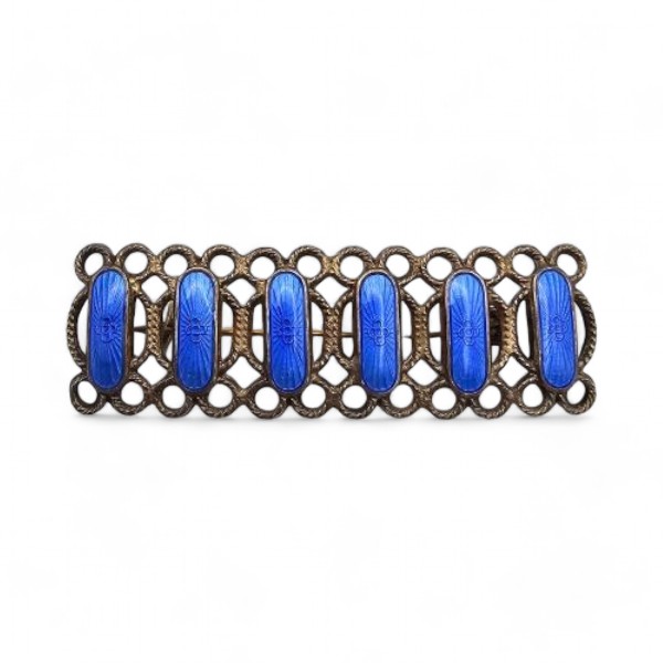 Norway Arne Nordlie Guilloche Enamel Sterling Silver Blue Bar Pin 6 G