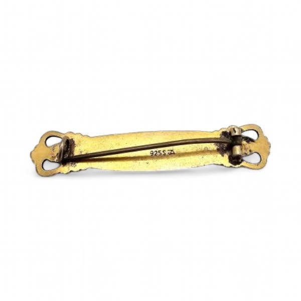 Vintage JA Guilloche Enamel Sterling Silver Blue Bar Pin 4.4 G
