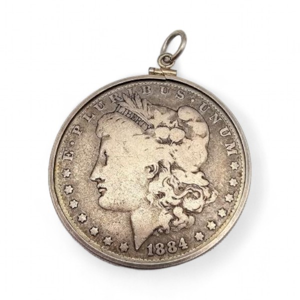 1884 Morgan 90% Silver Dollar Sterling Silver Boarder Pendant 28 G