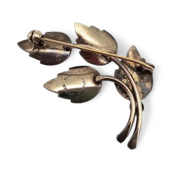 Denmark Jemax Guilloche Enamel Sterling Silver Blue Leaf Brooch 6.8 G