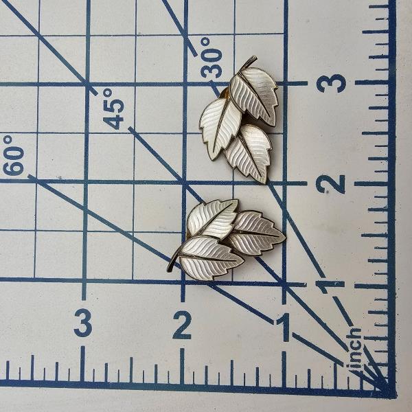 Denmark Jemax Guilloche Enamel Sterling Silver White Leaf Earrings 7 G