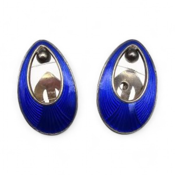 Denmark Jemax Guilloche Enamel Sterling Silver Blue Earrings 5.5 G