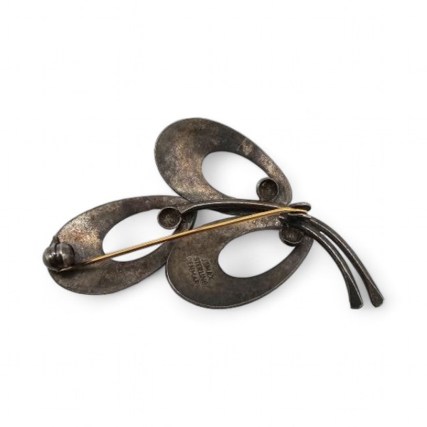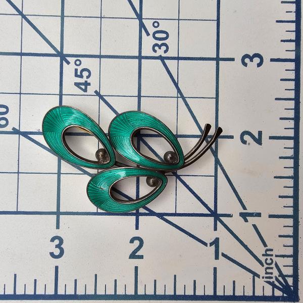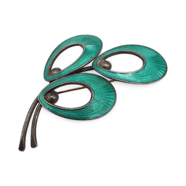 Denmark VB Volmer Bahners Guilloche Enamel Sterling Silver Green Brooch 8.4 G