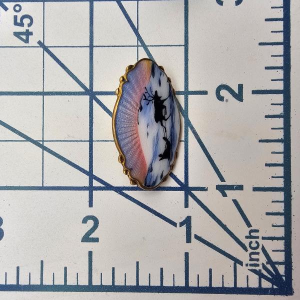Norway Albert Scharning Guilloche Enamel Sterling Silver Reindeer Scene Scalloped Brooch 5.5 G