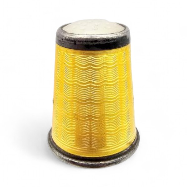 Norway Marius Hammer Guilloche Enamel Sterling Silver Yellow Thimble 7.3 G