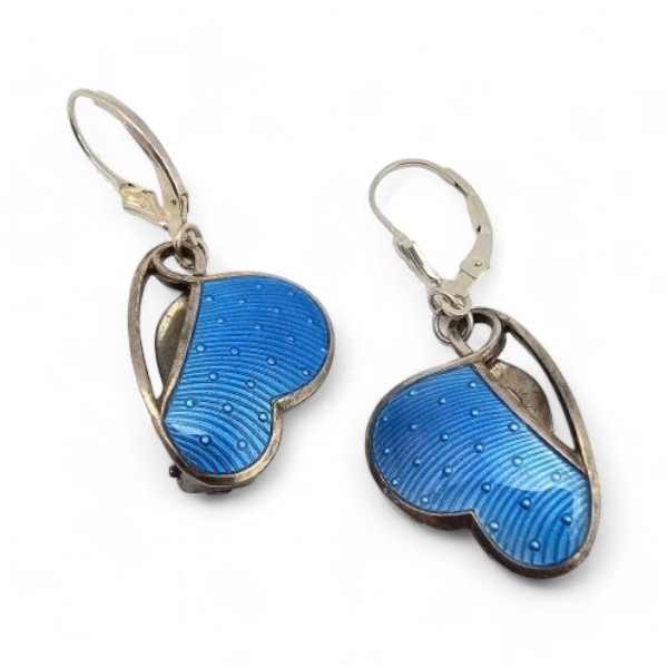 Norway H Ivar T Holth Guilloche Enamel Sterling Silver Blue Butterfly Earrings 7.1 G