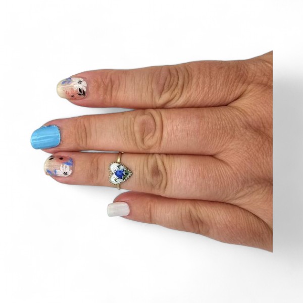 Norway H Ivar T Holth Guilloche Enamel Sterling Silver Bluebell Flower Ring Sz. 4.75, 1.2 G